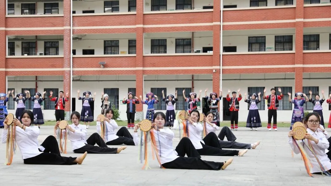 蓮鼓越歌行是一種源于中國傳統(tǒng)文化的舞蹈形式,具有豐富的內(nèi)涵和獨(dú)特的表達(dá)方式。它獨(dú)特的舞蹈特點(diǎn)和古老的歷史背景使其成為中國民族舞蹈文化的重要組成部分,也是世界文化遺產(chǎn)的瑰寶之一。在學(xué)校教學(xué)區(qū)小廣場,蓮鼓越歌行的舞者們手持鼓棒和蓮花,配合鼓聲和歌曲的旋律,跳躍著獨(dú)特的舞步,展示出優(yōu)美、熱烈、充滿活力的舞蹈文化。