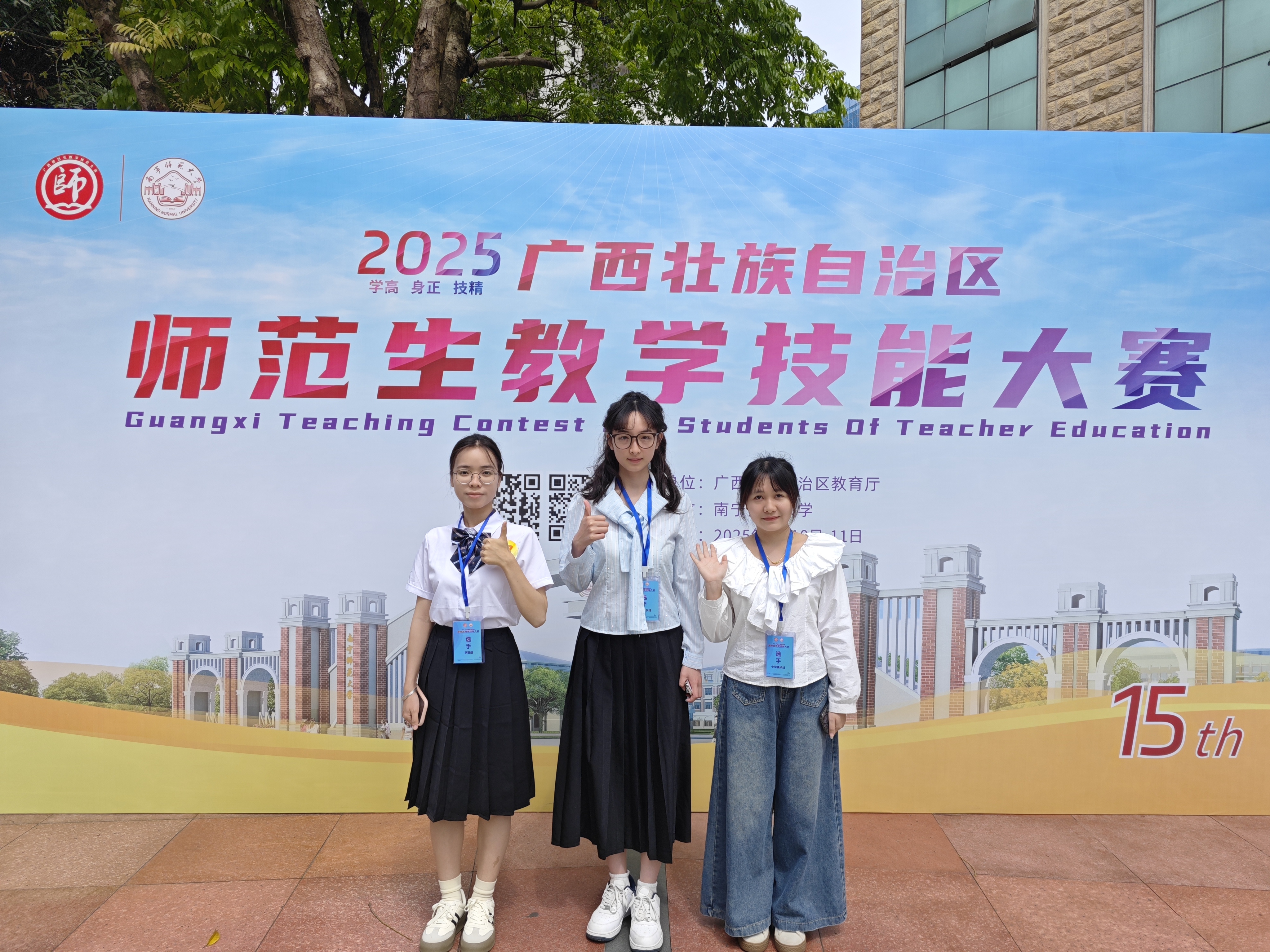 近日,2025 年廣西壯族自治區(qū)師范生教學(xué)技能大賽圓滿落幕。我院共派出三名學(xué)子, 分別是李婷、劉世燕老師指導(dǎo)的2023級學(xué)前教育9班學(xué)生歸麗婧;覃小密、何瑞禎老師指導(dǎo)的2023級藝術(shù)教育4班梁思媛;梁善雅、李婷慧老師指導(dǎo)的2023級藝術(shù)教育5班韋煙霞。?
