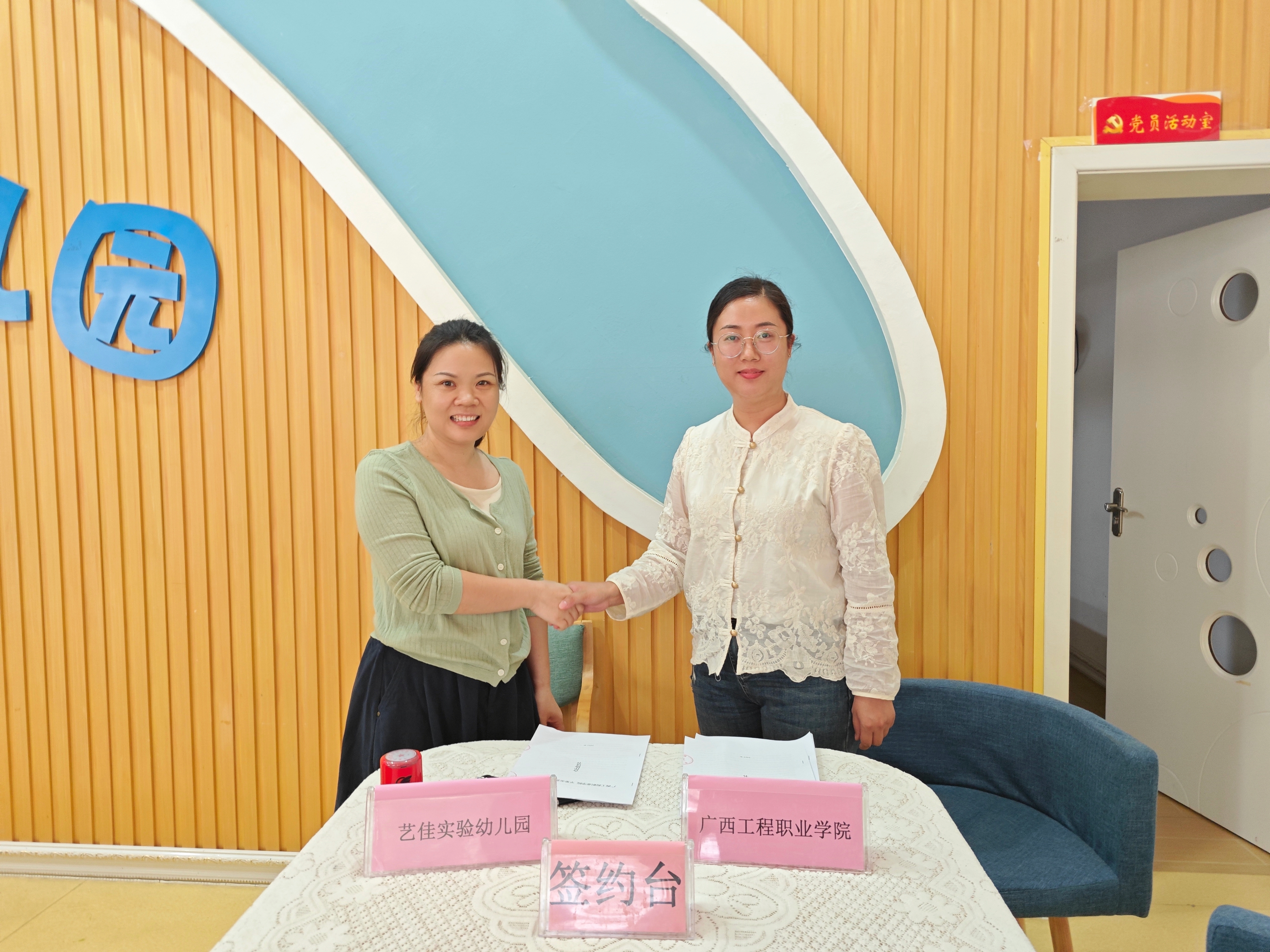 廣西工程職業(yè)學(xué)院作為當(dāng)?shù)嘏囵B(yǎng)學(xué)前教育專業(yè)人才的重要基地,多年來始終致力于提升人才培養(yǎng)質(zhì)量,注重與一線幼兒園的實踐合作。而 平果藝佳實驗幼兒園是區(qū)域內(nèi)口碑優(yōu)良的學(xué)前教育機(jī)構(gòu),在幼兒教學(xué)、管理運營等方面積累了豐富經(jīng)驗。此次簽約前,雙方經(jīng)過多次溝通協(xié)商,圍繞人才培養(yǎng)、人才評價、實習(xí)實踐、課程研發(fā)、教師專業(yè)實踐等方面達(dá)成共識,旨在通過深度合作,實現(xiàn)院校與幼兒園的優(yōu)勢互補(bǔ)。?