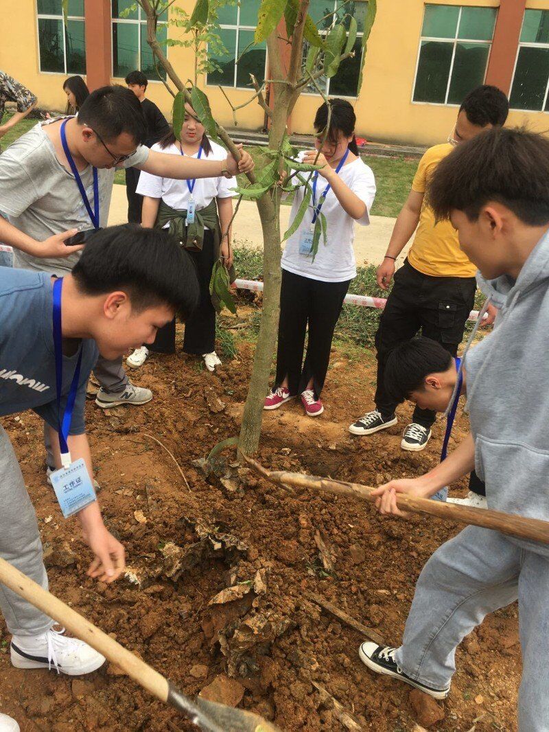 我校校長(zhǎng)助理黃秋霞、后勤管理處劉兆兵處長(zhǎng)、校團(tuán)委陳威老師率先垂范,與學(xué)生們共同參與到美化校園植樹(shù)活動(dòng)中。同學(xué)們熱情高漲,平常連鋤頭都沒(méi)有摸過(guò)的他們,此刻干起活來(lái)卻有模有樣?,F(xiàn)場(chǎng)大家互相合作,氣氛活躍,有的負(fù)責(zé)挖坑、有的幫忙扶樹(shù)苗、有的澆水......熱鬧的場(chǎng)面既溫馨又快樂(lè)。一眨眼的功夫,在師生的辛勤勞動(dòng)下,百十顆樹(shù)苗已扎根土里,生意盎然,象征著新的希望。雖然大家腳底沾滿了泥土,弄臟了褲子,弄濕了鞋子,但眼前這一片新生的春意讓大家滿心歡喜。