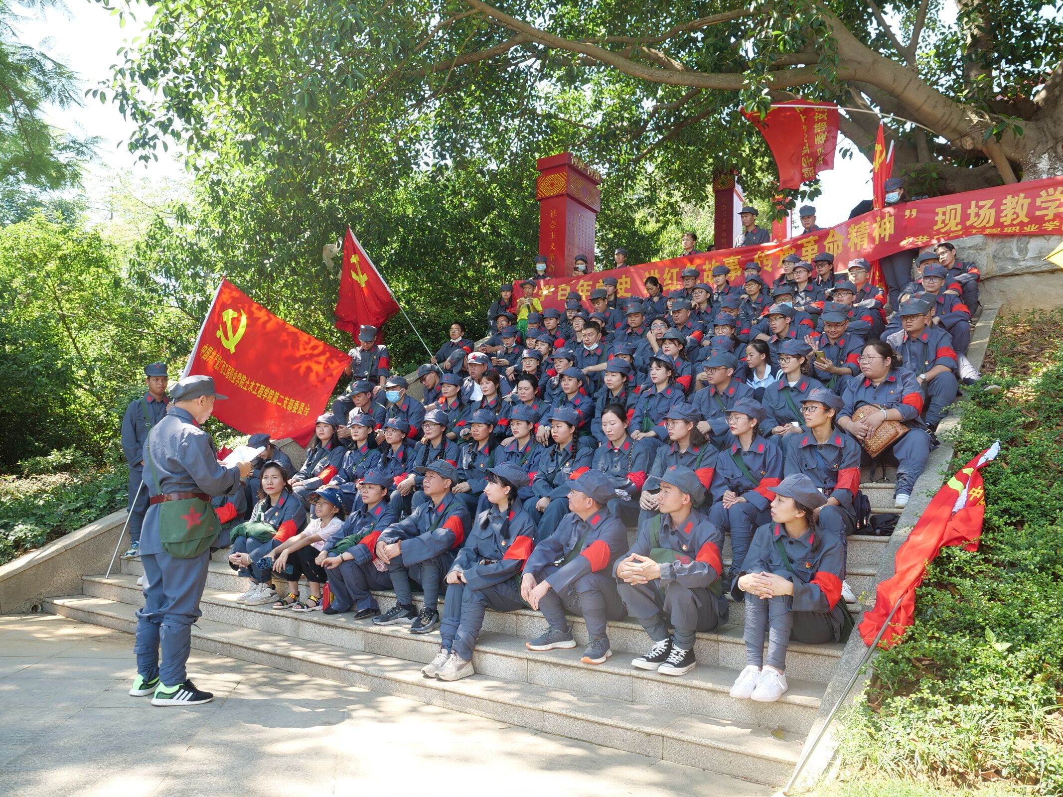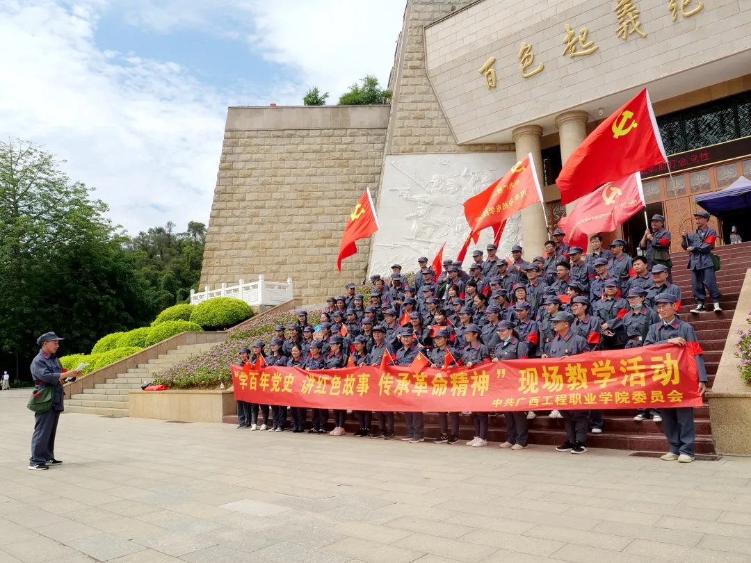 最后一站來到百色起義紀念館,在百色起義紀念館大門階梯上,全體黨員身著紅軍裝,整齊肅立,再次聆聽學校黨委副書記、副校長胡細木為大家講述“百色起義歷史及紅色故事”。隨后,集體參觀學習了百色起義歷史展館廳、英烈廳等展廳。一個一個的紅色革命故事,一件一件的紅色革命文物,洗滌和凈化了我們內(nèi)心深處的靈魂,更加堅定了我們在新時代賡續(xù)紅色血脈、傳承紅色精神的理想信念。