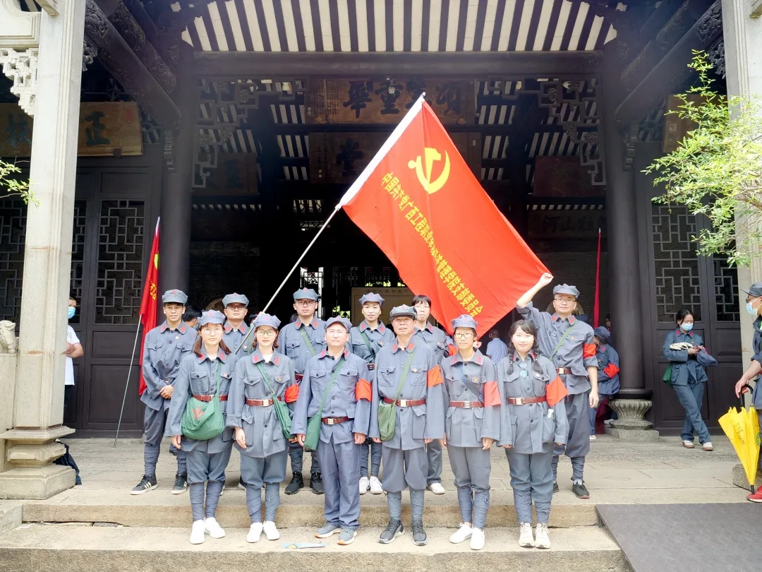 第二站來到粵東會館,參觀百色起義紅七軍指揮部遺址,緬懷鄧小平、張云逸、韋拔群等老一輩革命家浴血奮戰(zhàn)的歷史足跡,感受當年百色起義波瀾壯闊的場面,感悟革命先輩的革命精神。大家深深感到:在這么簡陋的條件下,我們的革命先輩克服了極度艱苦的條件和難以想象的困難,將革命不斷引向勝利,創(chuàng)造了光輝的百色起義精神。廣大黨員干部在會館大廳門前,整齊集隊,高舉黨旗,學唱《沒有共產(chǎn)黨就沒有新中國》《團結就是力量》《歌唱祖國》等紅色經(jīng)典歌曲,亢奮的歌曲催人奮進,激發(fā)起全體黨員的學史愛黨真摯情懷。