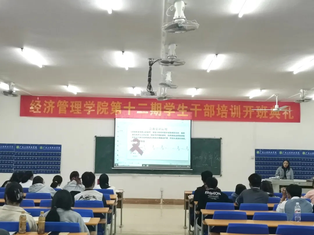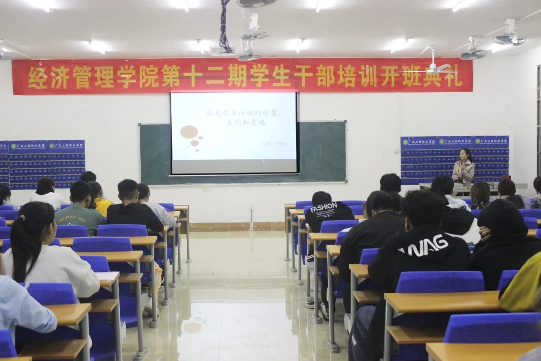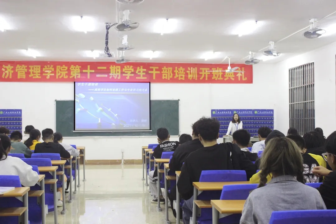 學(xué)校校長助理黃秋霞,經(jīng)濟(jì)管理學(xué)院黨支部書記、副院長覃清香,經(jīng)濟(jì)管理學(xué)院辦公室主任雷紅、分團(tuán)委書記李東英及輔導(dǎo)員、專職老師代表出席開班儀式,經(jīng)濟(jì)管理學(xué)院2021級全體學(xué)生干部參加培訓(xùn)。