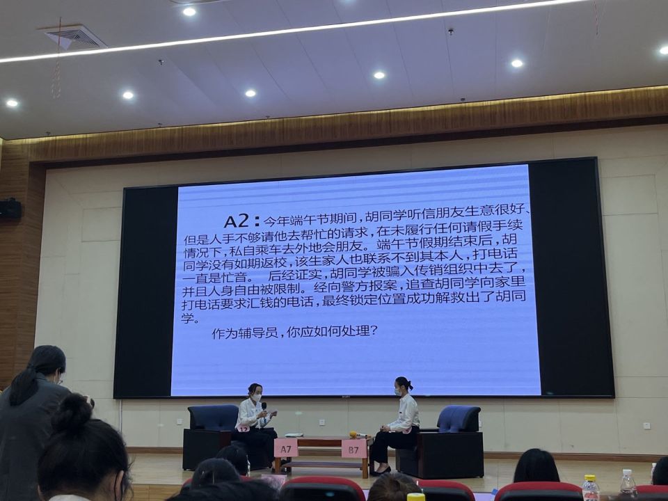 本屆大賽由學生工作處組織開展,大賽分為“基礎知識測試”、“談心談話”、“案例研討”三個環(huán)節(jié)。4月8日下午,進行“基礎知識測試”環(huán)節(jié),此環(huán)節(jié)采用閉卷作答方式進行,限時90分鐘,重點考察輔導員的理論素養(yǎng)和業(yè)務知識,全方位考核輔導員業(yè)務基本功。4月9日,分別進行“談心談話”、“案例研討”賽項。
