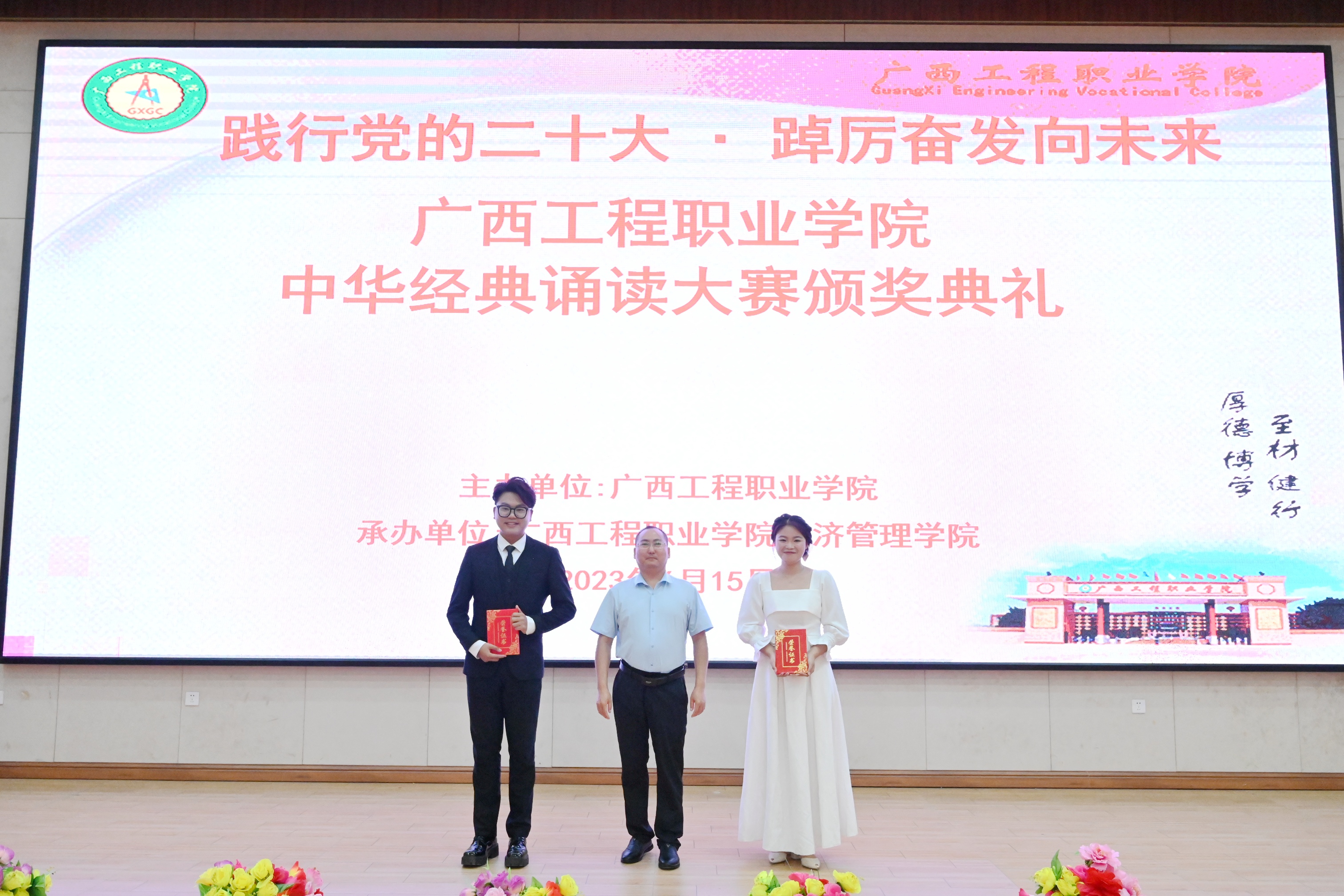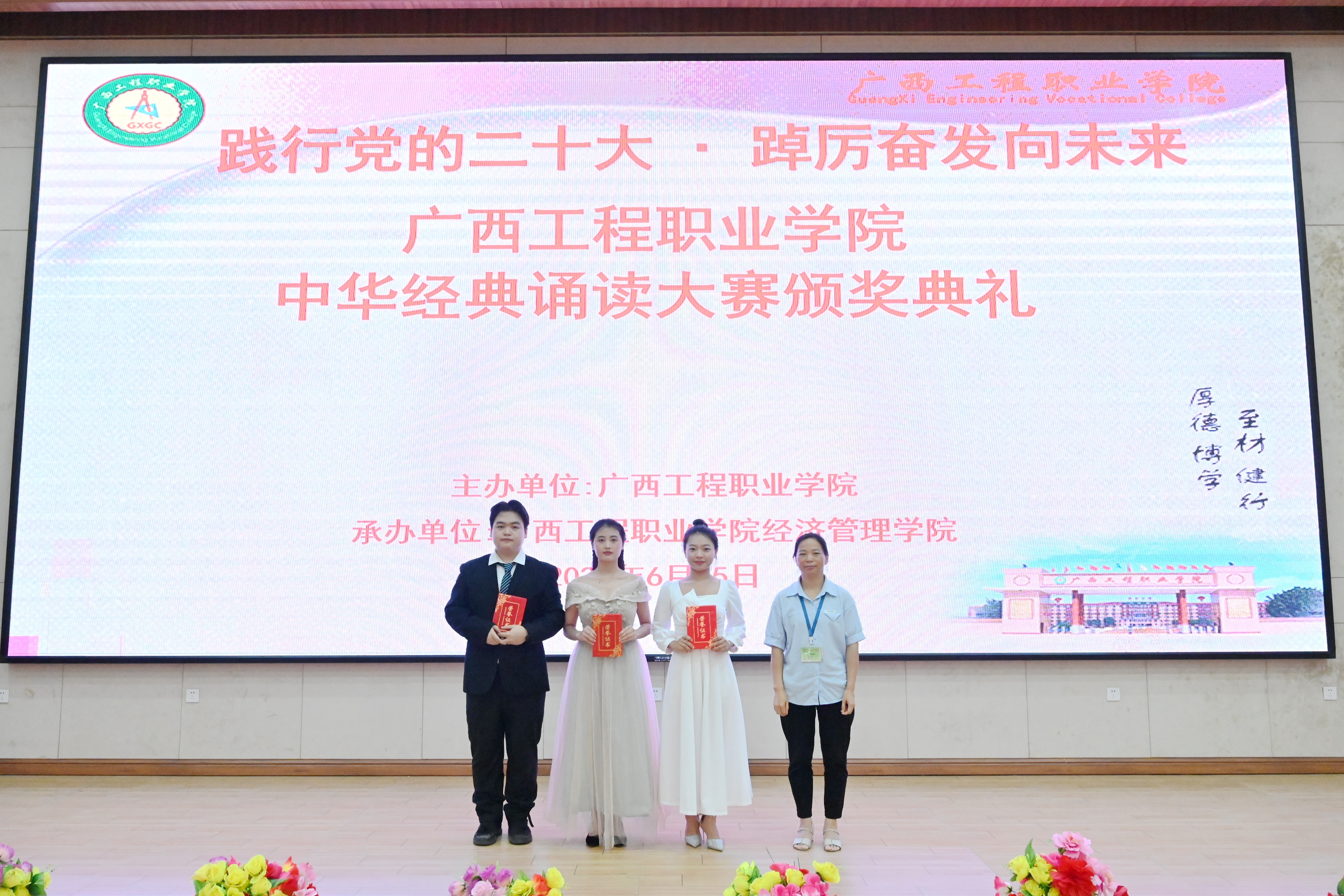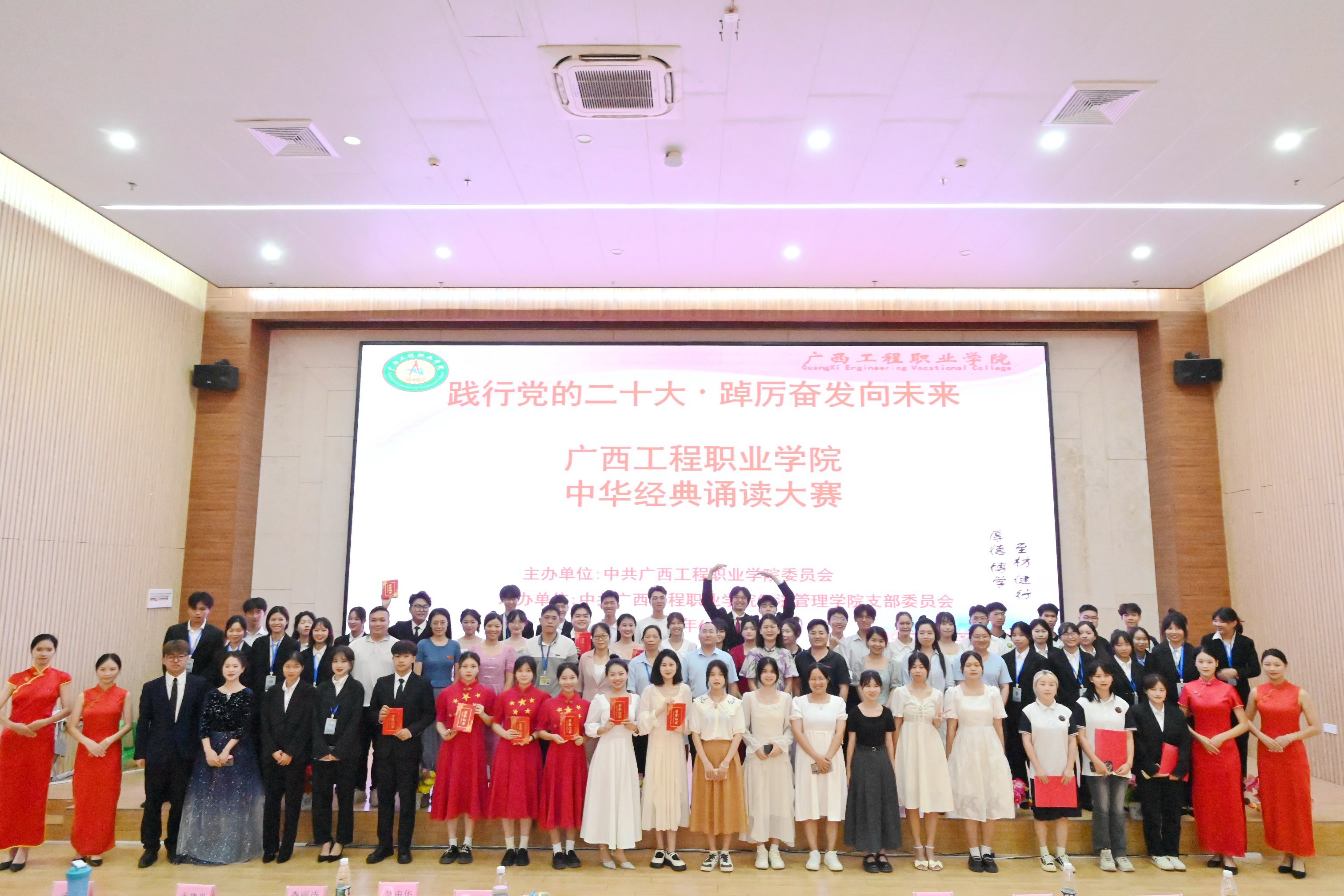 為深入貫徹黨的二十大精神,加大國家通用語言文字推廣力度,弘揚中華優(yōu)秀傳統(tǒng)文化,推進文化自信自強。以中華經(jīng)典、紅色文化鑄魂育人,奏響愛黨、愛國、愛社會主義的主旋律,鑄牢中華民族共同體意識,凝聚奮進新征程、建功新時代的磅礴力量。2023年6月15日晚,廣西工程職業(yè)學(xué)院在圖文信息大樓一樓學(xué)術(shù)報告大廳舉行“踐行黨的二十大·踔厲奮發(fā)向未來”校園中華經(jīng)典誦讀大賽比賽,由中共廣西工程職業(yè)學(xué)院委員會主辦,中共廣西工程職業(yè)學(xué)院經(jīng)濟管理學(xué)院支部委員會承辦。