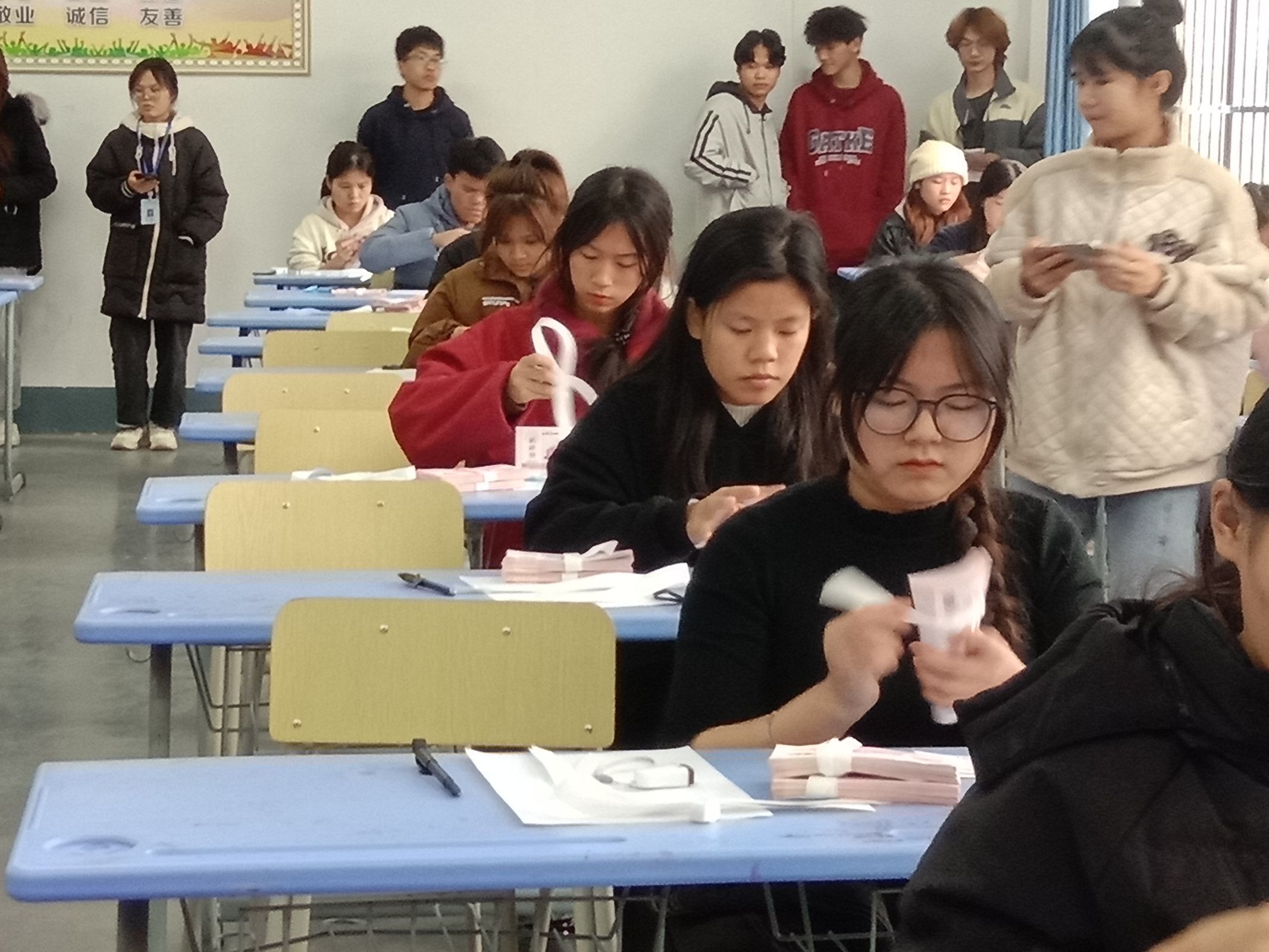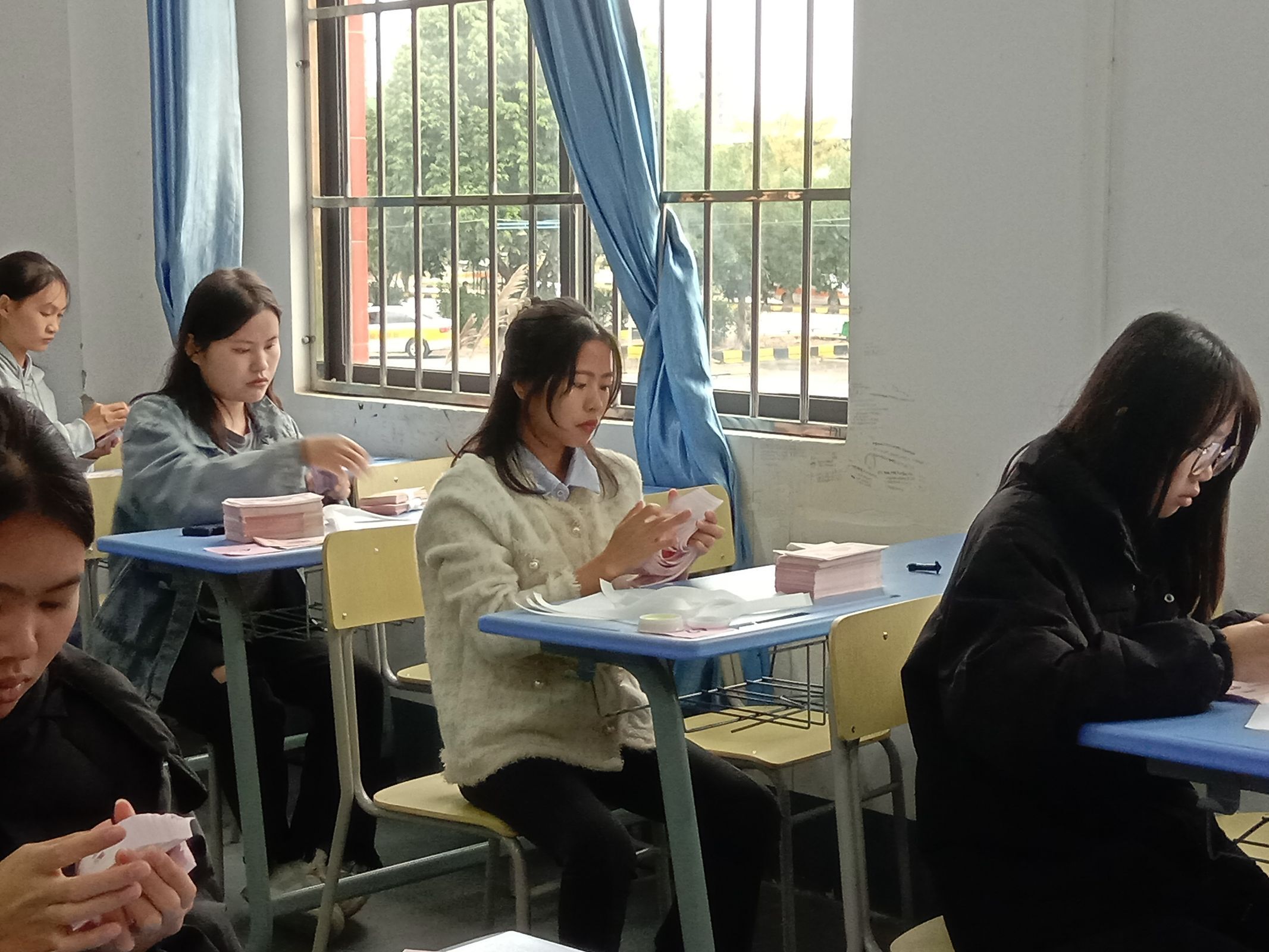 為了讓學生更好的了解大數(shù)據(jù)與財務管理、大數(shù)據(jù)與會計專業(yè)的技能特性,增強學生對專業(yè)課學習的熱情和動力,更好的營造出一個積極向上的校園學習環(huán)境和氣氛,讓學生更好的適應當今社會快速發(fā)展的節(jié)奏,增強自身專業(yè)性。2023年12月16日,經(jīng)濟管理學院舉行“技能無限,青春有為”第四屆會計技能大賽。本次比賽分為三個項目:翻打傳票比賽、點鈔比賽、科目知識競賽。決賽在第2教學樓舉行。