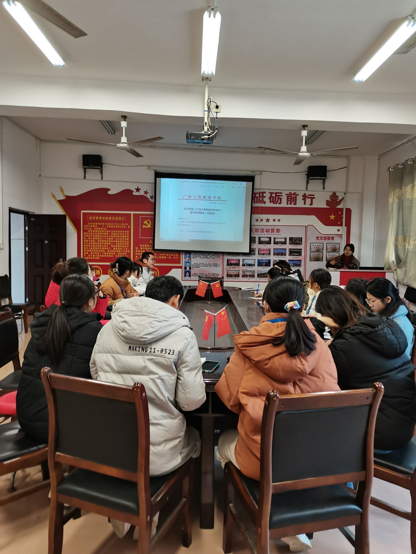 會(huì)上,經(jīng)濟(jì)管理學(xué)院黨支部書記、院長龐英連對(duì)2024年春季學(xué)期開學(xué)相關(guān)工作作安排部署。她強(qiáng)調(diào),新學(xué)期開學(xué)在即,全體教師要高度重視新學(xué)期開學(xué)工作,圍繞學(xué)校工作整體部署,做好春季學(xué)期開學(xué)的各項(xiàng)準(zhǔn)備工作,尤其是要抓好教學(xué)日常運(yùn)行及學(xué)生管理工作,確保學(xué)生有序返校。最后,學(xué)院全體教師共同學(xué)習(xí)了《廣西工程職業(yè)學(xué)院課堂教學(xué)管理規(guī)定》、《廣西工程職業(yè)學(xué)院教學(xué)事故認(rèn)定及處理方法》,經(jīng)濟(jì)管理學(xué)院黨支部書記、院長龐英連要求學(xué)院全體教師嚴(yán)格按照文件要求完成教學(xué)工作,做好課堂教學(xué)管理,避免出現(xiàn)教學(xué)事故。