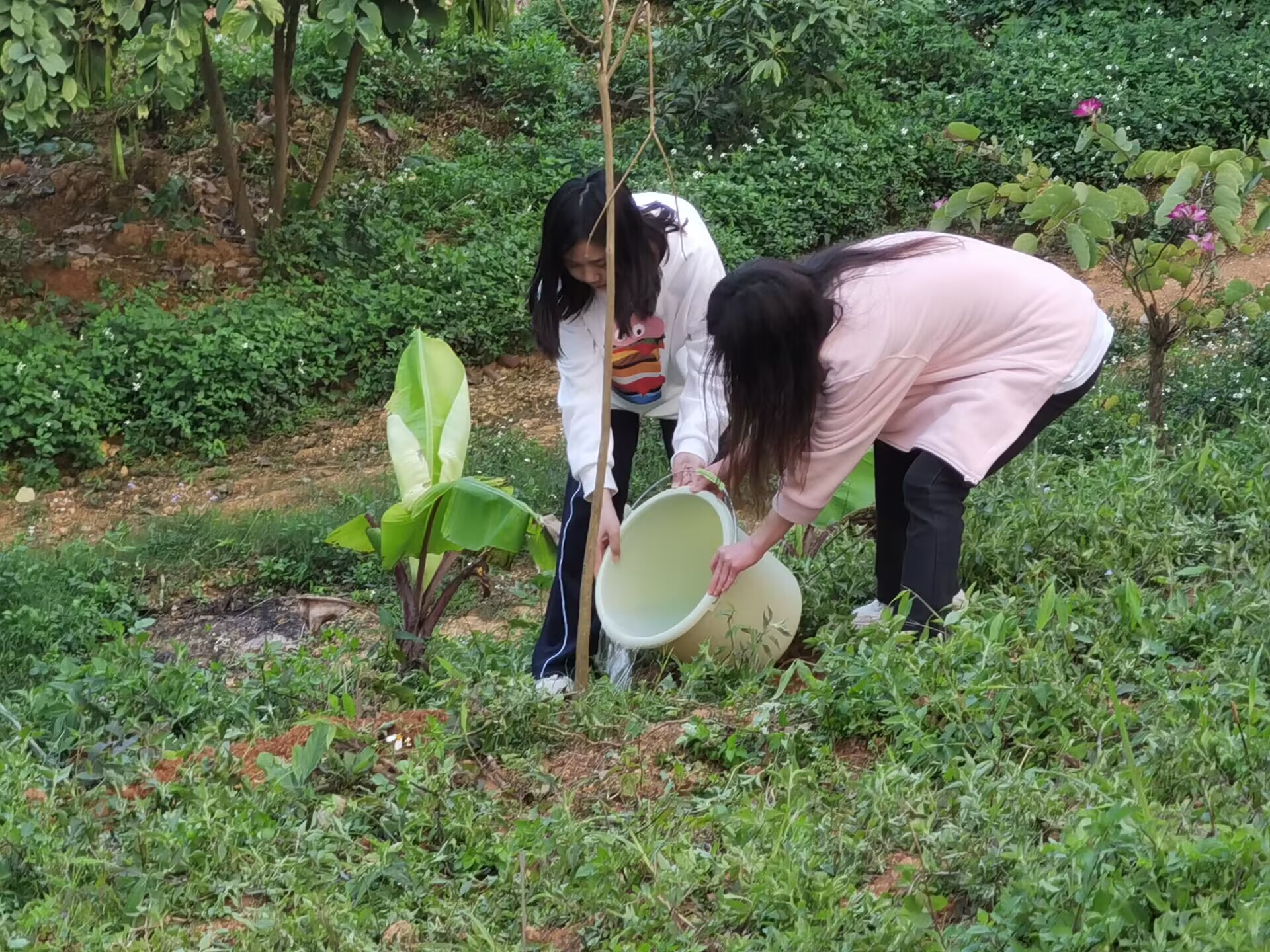 植樹現(xiàn)場熱火朝天,師生們紛紛擼起袖子,除草、揮鍬鏟土、扶苗固正、培土壓實、澆水灌溉,每一道工序都一絲不茍、銜接有序。師生交流栽種新樹、加強綠色生態(tài)發(fā)展的看法。植樹活動中,大家分工明確,配合默契,干得熱火朝天。揮鏟之間,一棵棵新植向陽而生。一鍬土,一桶水,澆灌的是生機和希望,承載的是大家的綠色環(huán)保夢想。