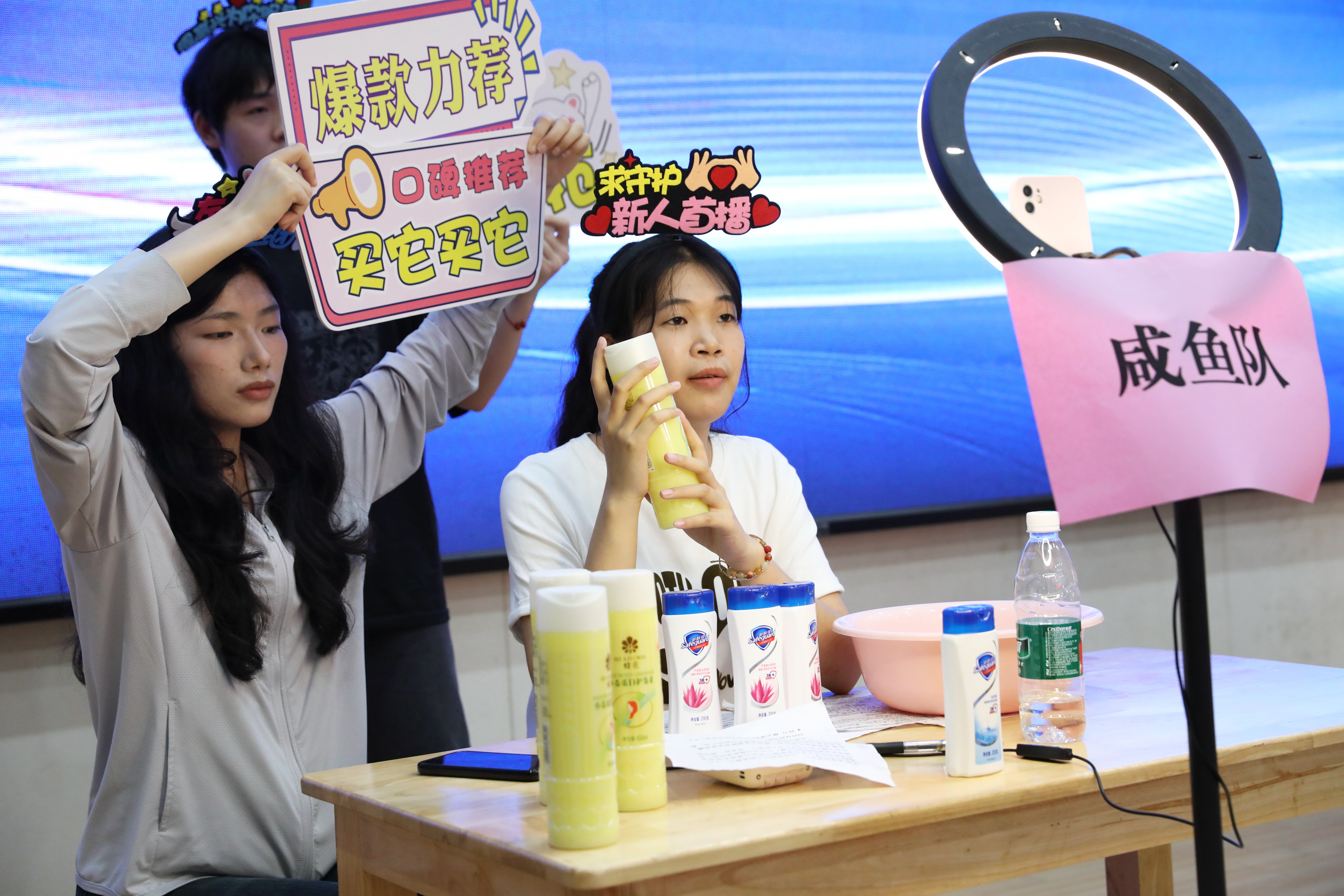 直播營銷賽項主要考察參賽選手運用互聯(lián)網(wǎng)思維的直播策劃能力、商品推銷能力、臨場應變能力等綜合技能。同學們在比賽中自信從容,能說會道,盡顯主播風采,充分展示出扎實過硬的專業(yè)技能。