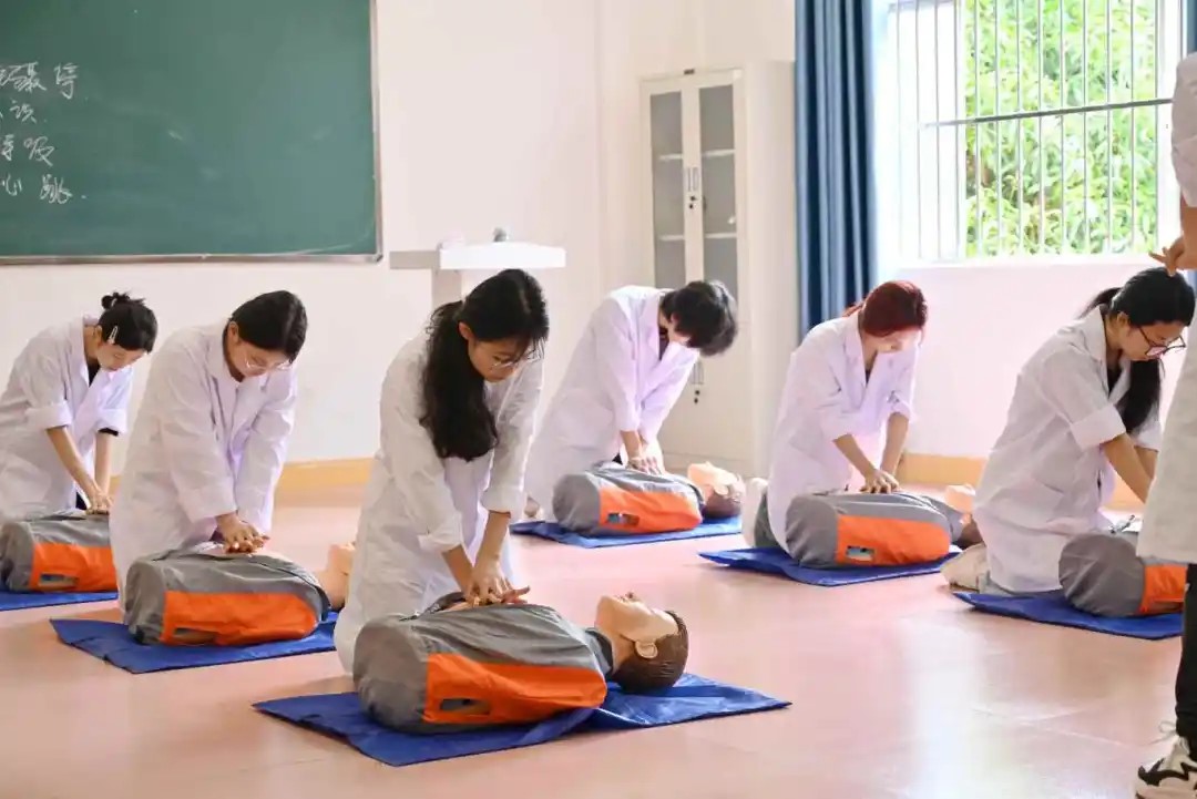 黃華老師通過實(shí)訓(xùn)課講授心肺復(fù)蘇的基本理論和心肺復(fù)蘇的實(shí)操程序,讓學(xué)生能快速識別心搏驟停、掌握實(shí)施心肺復(fù)蘇的技能。講課中,黃老師還強(qiáng)調(diào)了“時(shí)間就是生命”的急救理念,要求同學(xué)們要培養(yǎng)良好的職業(yè)道德,愛護(hù)、尊重患者,要有不怕臟、不怕累的吃苦精神和團(tuán)隊(duì)合作精神。