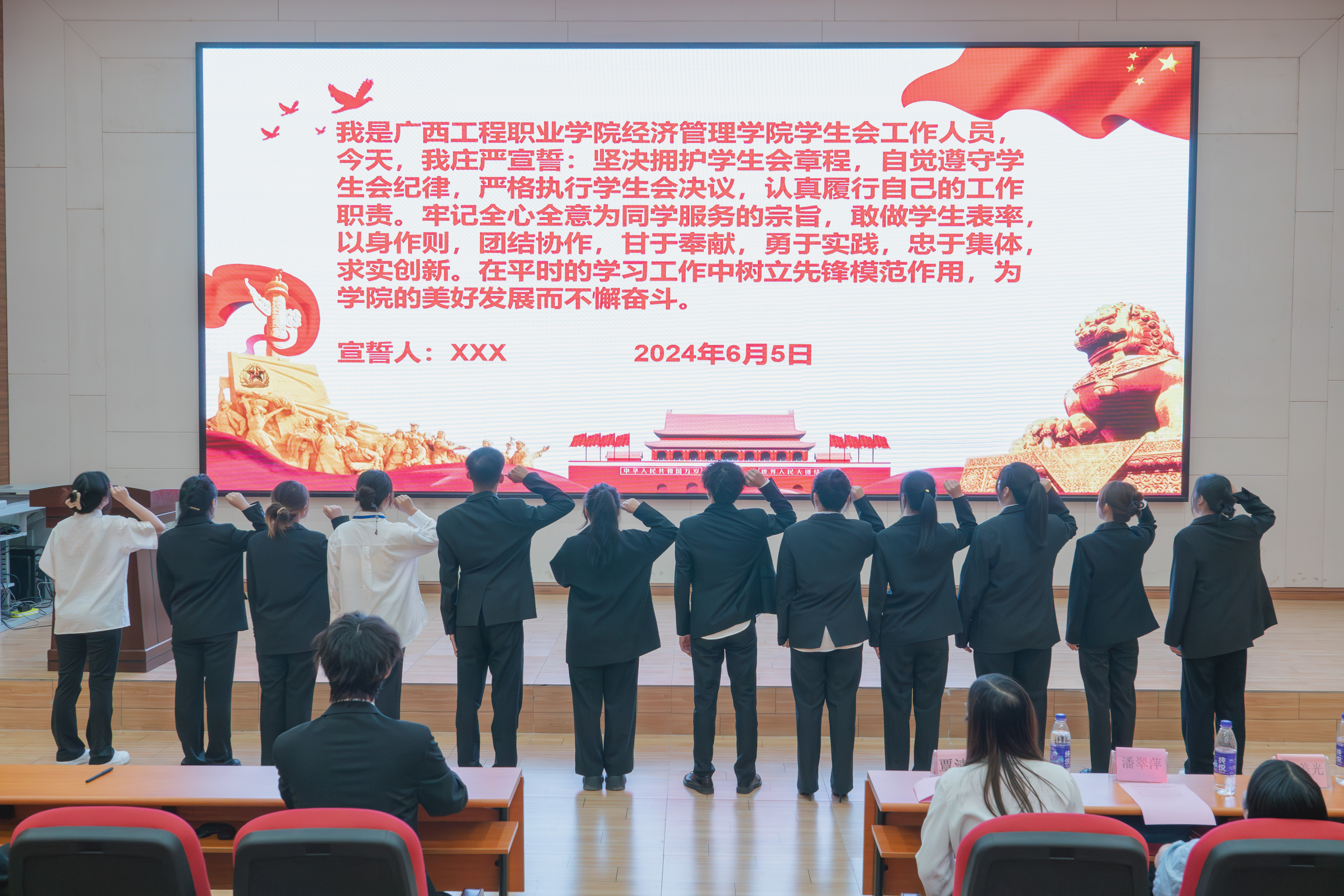 為加強(qiáng)我院團(tuán)學(xué)組織建設(shè)、提高學(xué)生素質(zhì)、更好促進(jìn)學(xué)生會(huì)組織改革發(fā)展。2024年6月5日晚上,經(jīng)濟(jì)管理學(xué)院第十六屆學(xué)生會(huì)換屆在學(xué)校圖文信息大樓五樓學(xué)術(shù)報(bào)告廳順利召開。