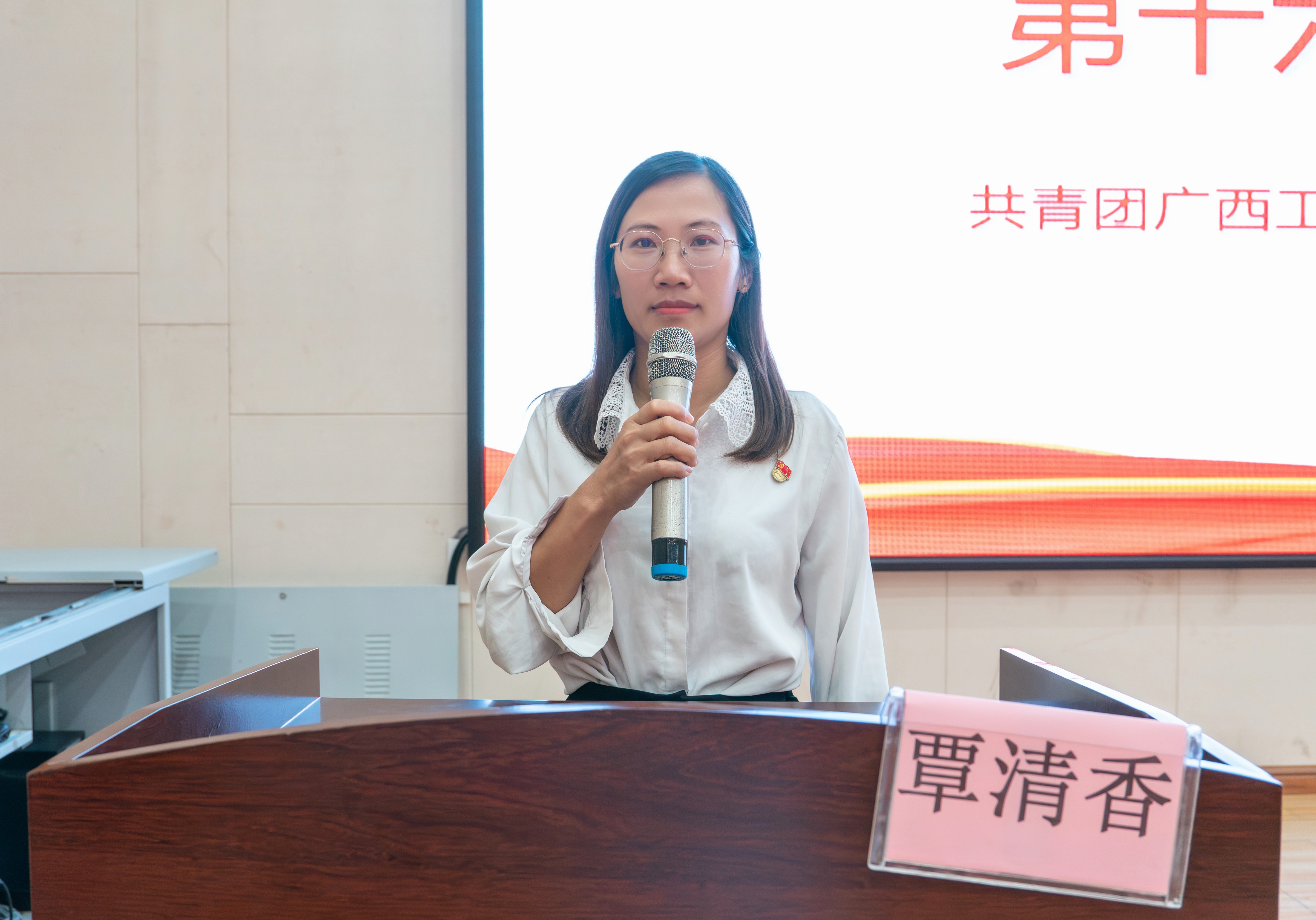 經(jīng)濟(jì)管理學(xué)院黨支部書記、院長(zhǎng)覃清香宣布新一屆學(xué)生會(huì)干部人員名單。