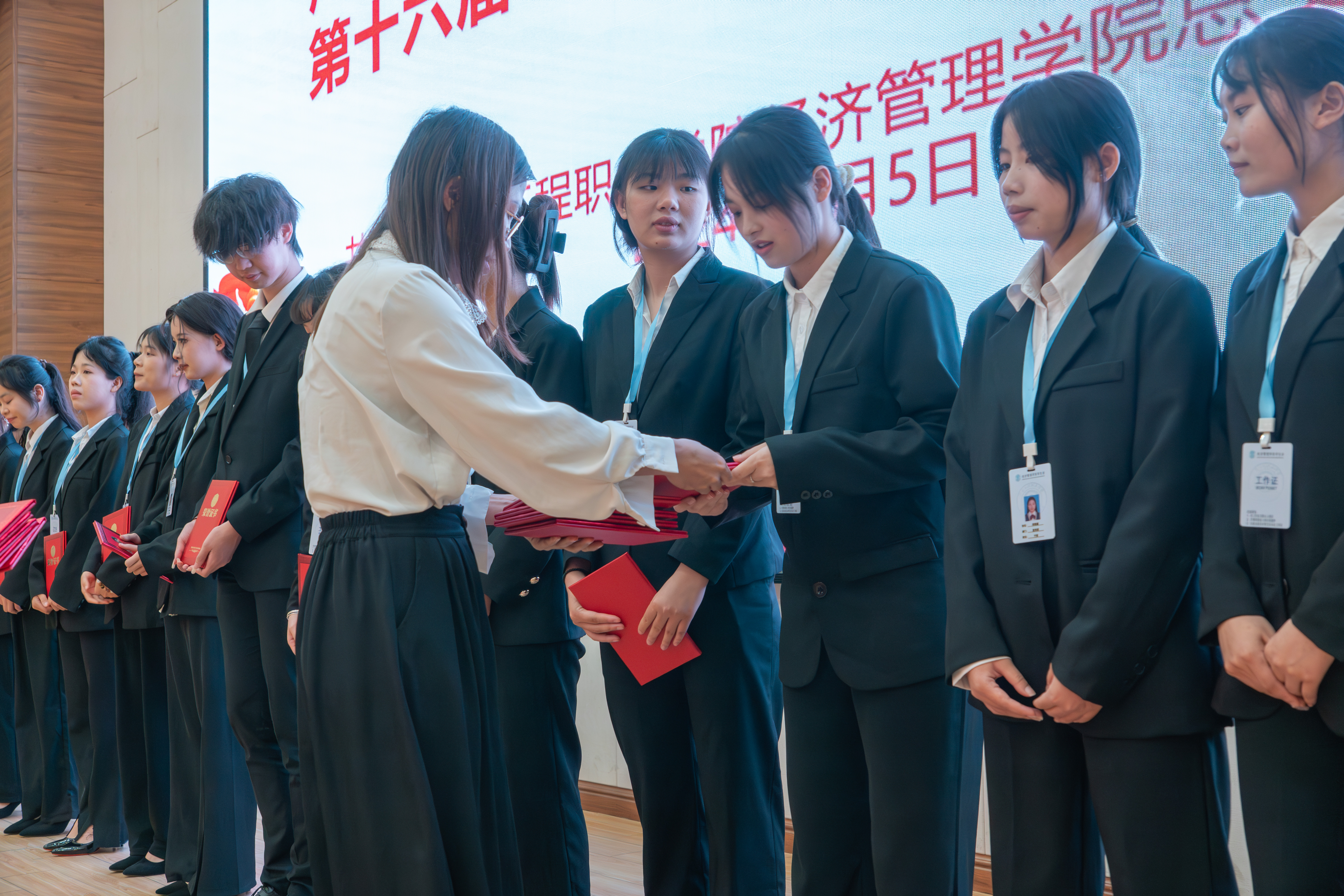 頒發(fā)十六屆學(xué)生會(huì)干部聘書。
