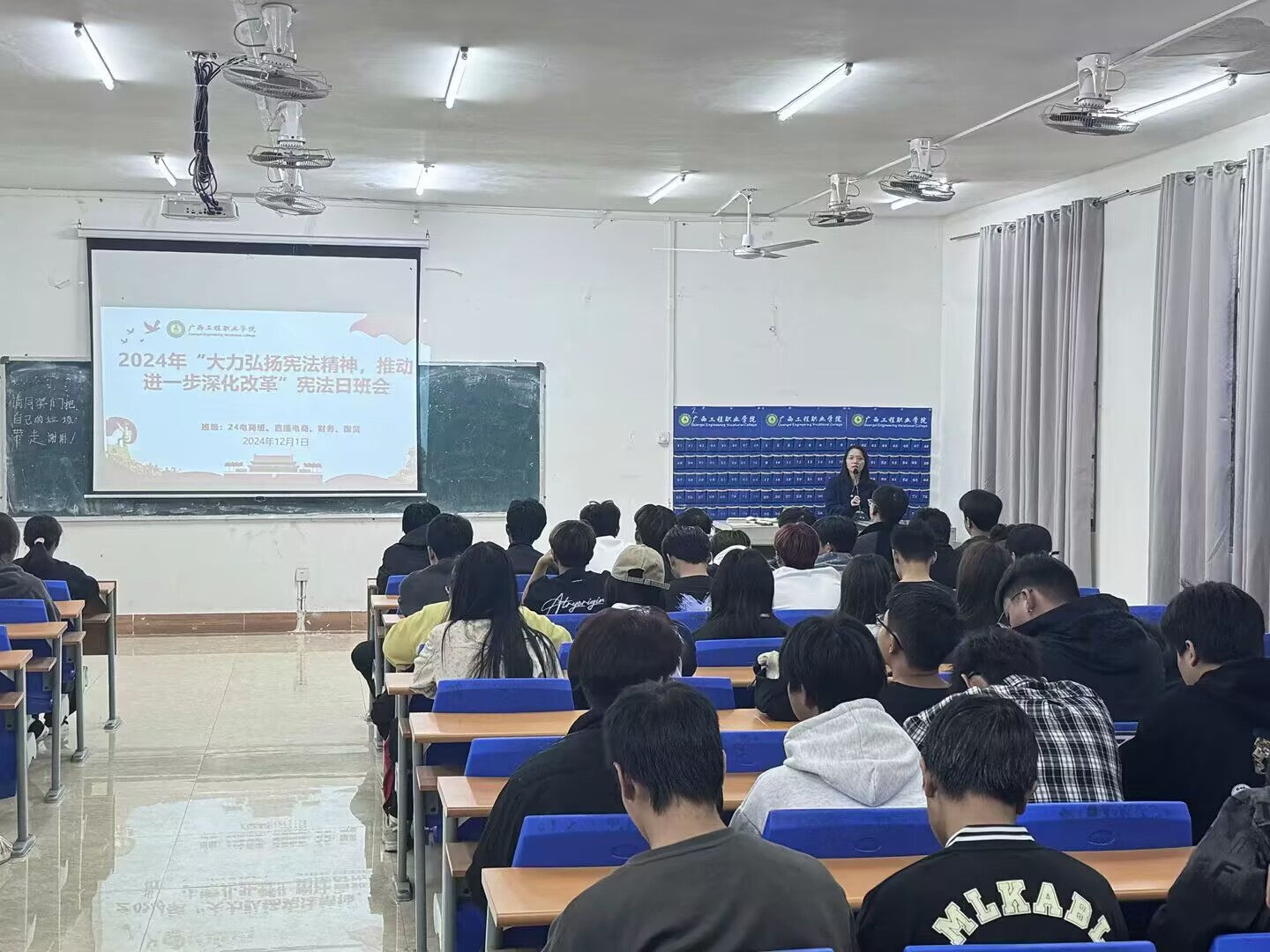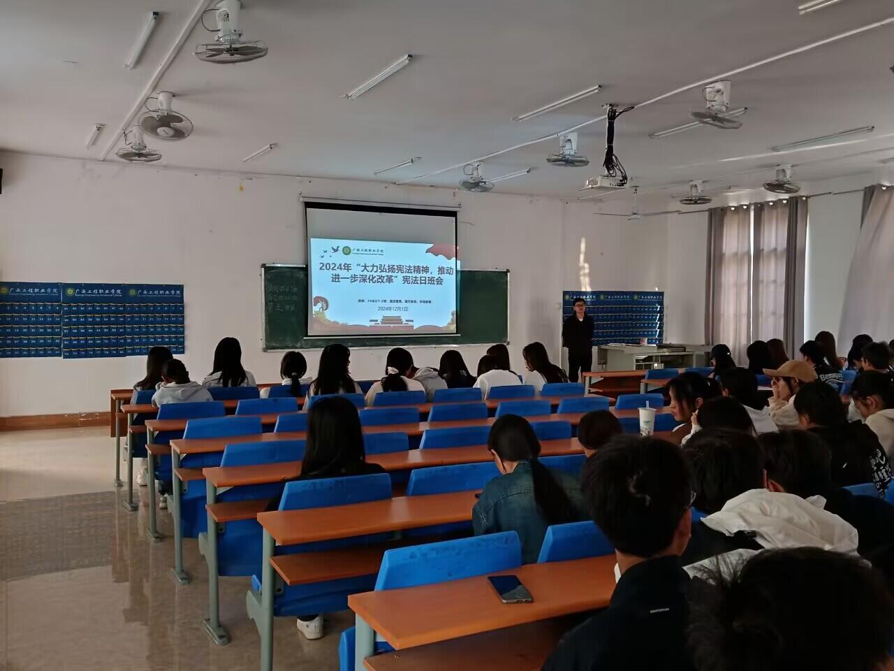 12月4日是國家第11個國家憲法日,也迎來全國第七個憲法宣傳周。為弘揚憲法精神,樹立憲法權(quán)威,增強廣大師生法治意識,推動法治實踐。借此契機,12月2日經(jīng)濟管理各班開展“大力弘揚憲法精神,推動進一步全面深化改革”的主題班會活動。