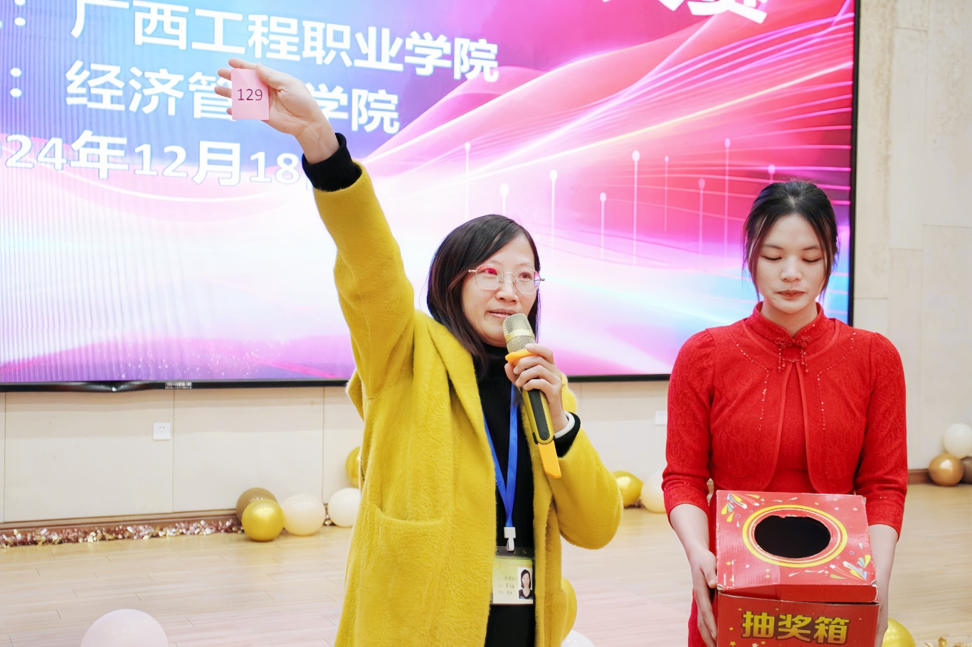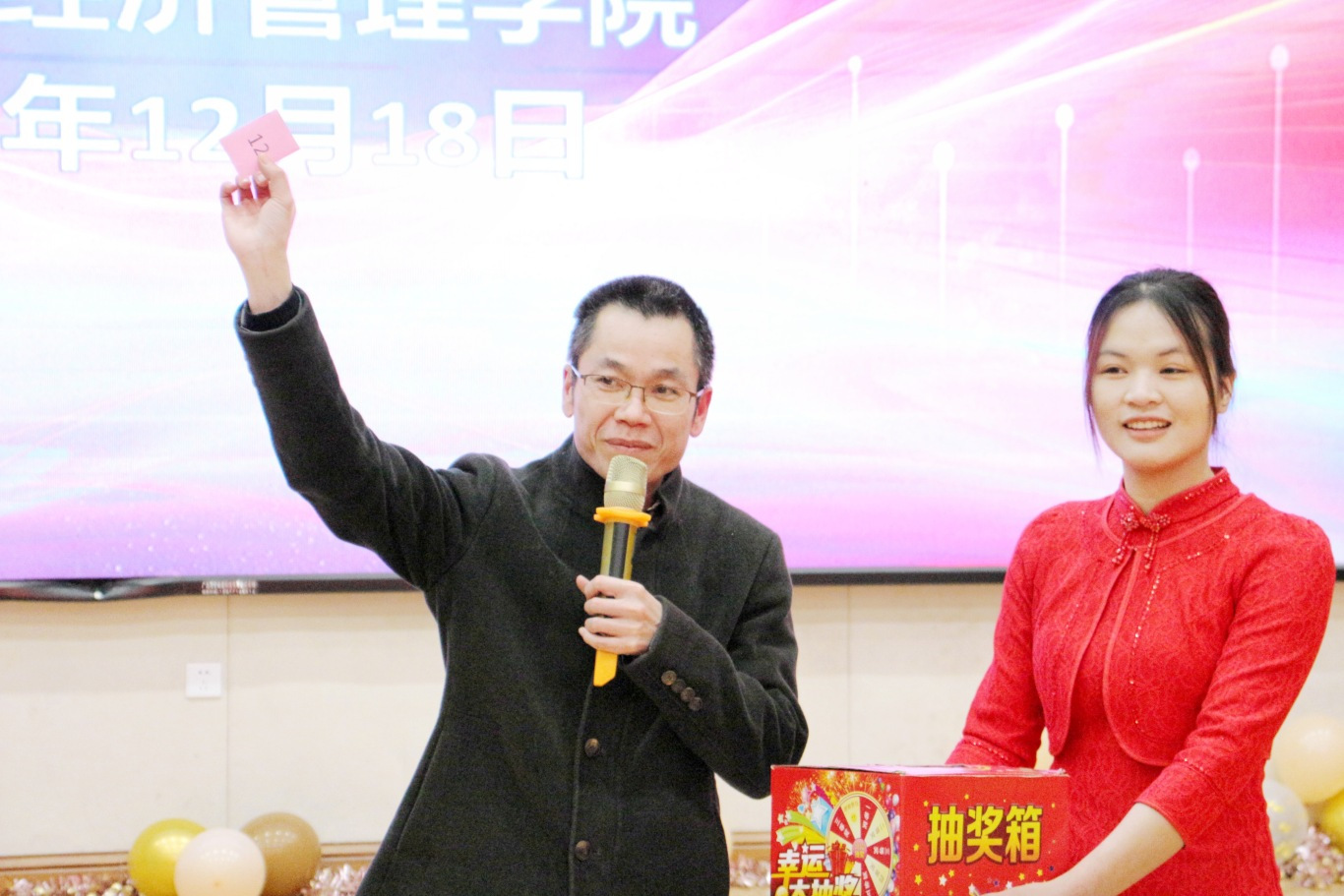 圖為學(xué)院辦公室主任雷紅現(xiàn)場抽取6名幸運兒