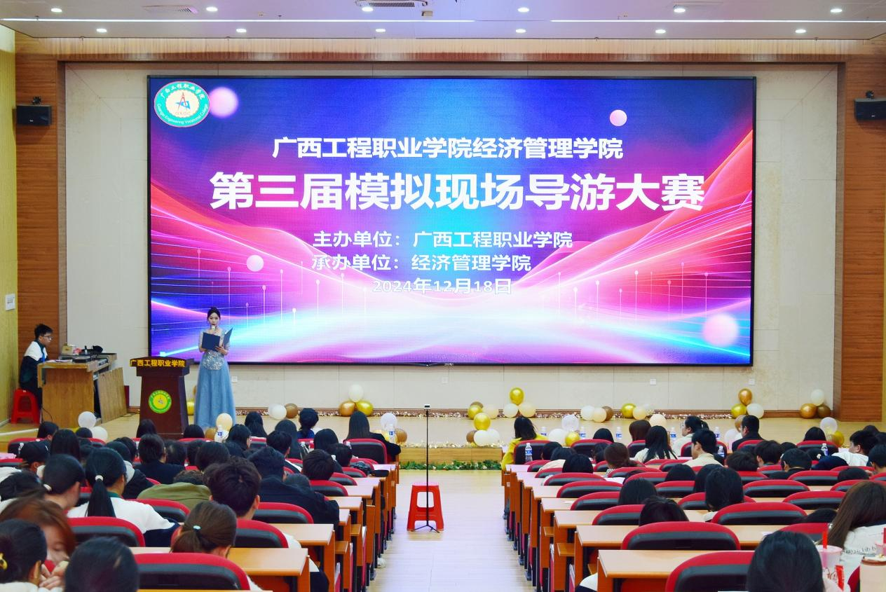 2024年12月18日,經(jīng)濟管理學(xué)院在學(xué)校圖文信息大樓一樓報告廳舉行第三屆“魅力導(dǎo)游,智慧領(lǐng)航”模擬現(xiàn)場導(dǎo)游大賽。本次大賽旨在通過展現(xiàn)導(dǎo)游風(fēng)采、以賽促學(xué)、以賽帶訓(xùn),激勵學(xué)生不斷加強業(yè)務(wù)知識的學(xué)習(xí)和技能訓(xùn)練,培養(yǎng)符合社會發(fā)展需要的高質(zhì)量的旅游服務(wù)人才。