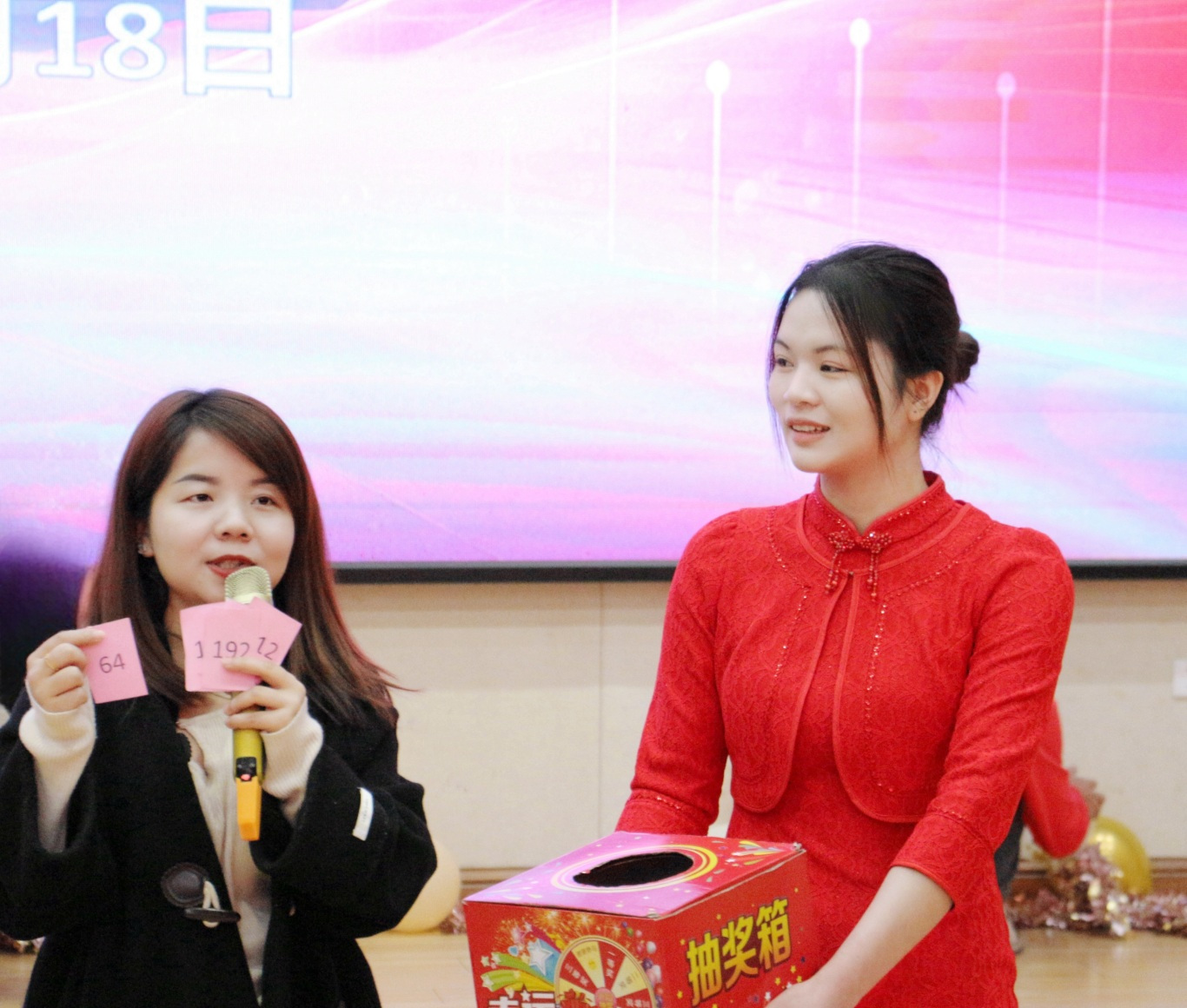 圖為財務(wù)處老師李裕萍現(xiàn)場抽取6名幸運兒