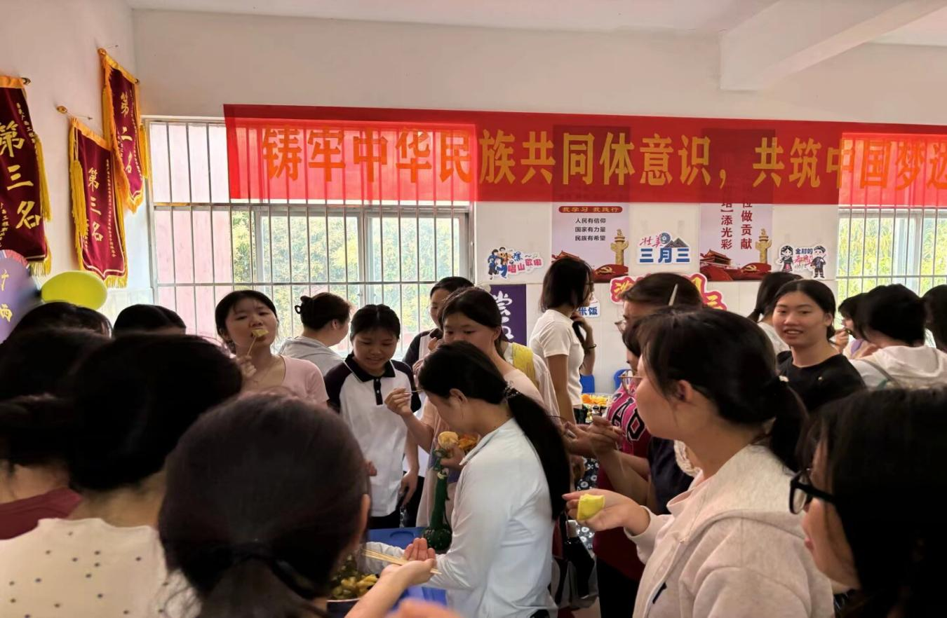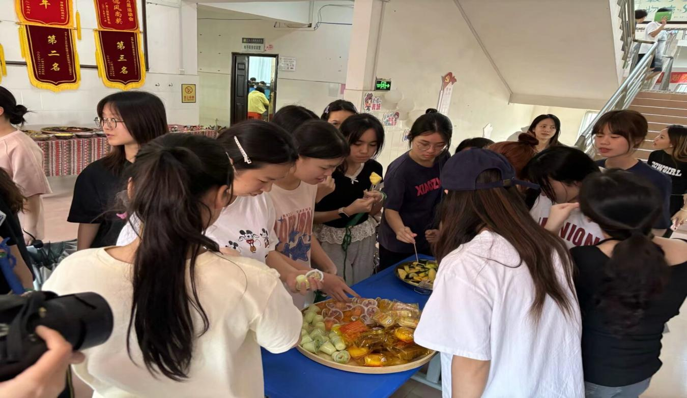 在民族美食體驗區(qū),師生們品嘗到地道的壯族美食,如五色糯米飯、廣西酸野、檸檬茶、精美水果等,通過味蕾的享受,進一步了解了壯族的飲食文化,共同慶祝廣西傳統(tǒng)節(jié)日。