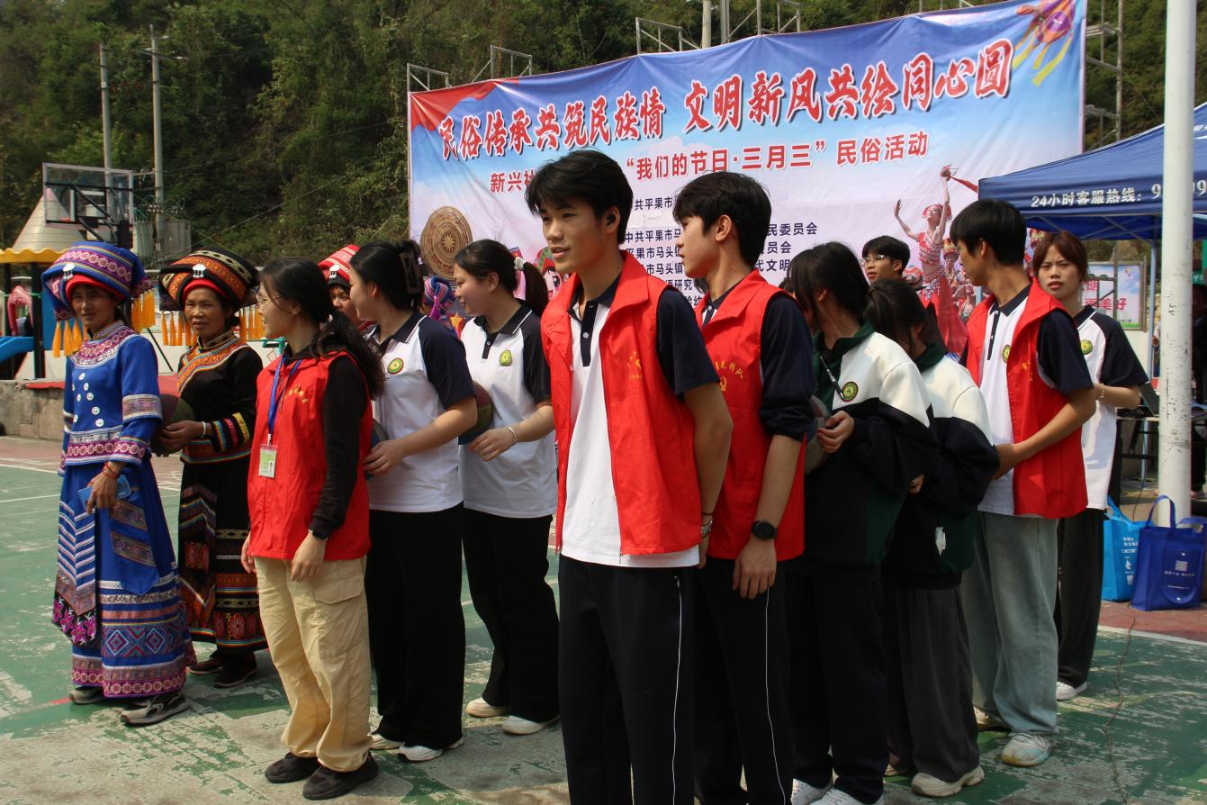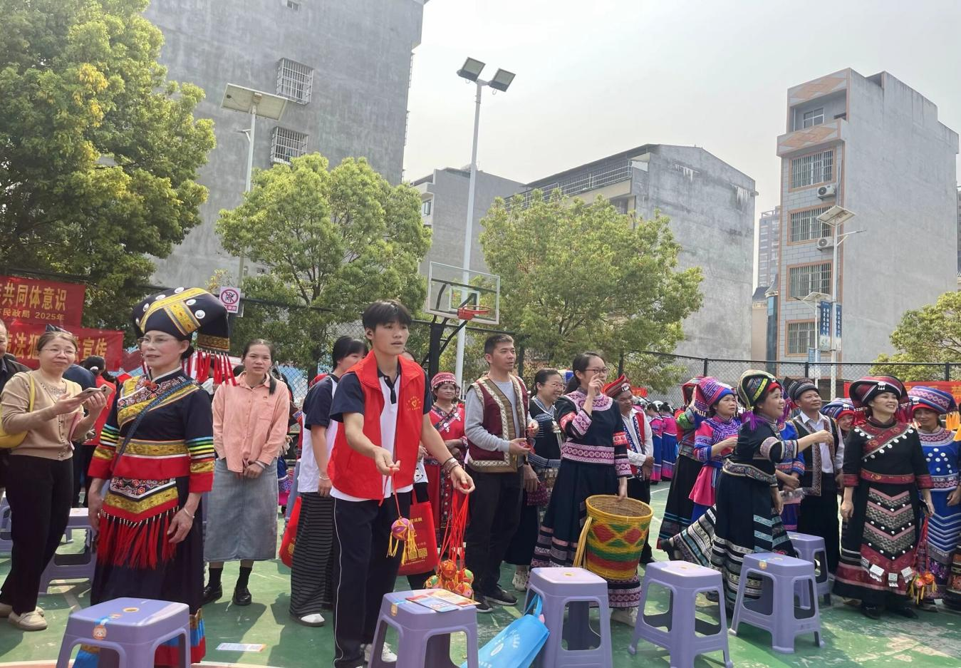 2025年3月26日上午,經(jīng)濟管理學(xué)院黨支部以“多彩三月三 共聚民族情”主題黨日活動為契機,組織學(xué)院師生黨員及入黨積極分子們走出校園,深入平果市新興社區(qū)參與小區(qū)的三月三民俗活動,讓師生們親身體驗感受壯族文化的深厚底蘊。同時,積極向廣大市民進行反詐知識宣傳。