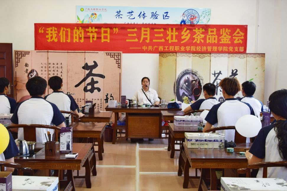 2025年3月27日下午,在經(jīng)濟管理學(xué)院二樓,經(jīng)濟管理學(xué)院黨支部、團總支組織開展特色多樣的廣西三月三民族文化體驗活動。其中有“我們的節(jié)日”三月三壯鄉(xiāng)茶品鑒會,由彭麗文老師帶領(lǐng)酒店管理與數(shù)字化運營專業(yè)的學(xué)生展示精湛的茶藝,現(xiàn)場邀請師生品壯鄉(xiāng)春茶。大家在品茶泡茶的過程中,不僅體驗了茶文化的韻味,更增進對壯族茶文化的了解。