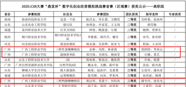 圖為2025iCAN 大賽 “鼎堂杯” 數(shù)字化創(chuàng)業(yè)經(jīng)營模擬挑戰(zhàn)賽省賽(區(qū)域賽)獲獎情況圖片