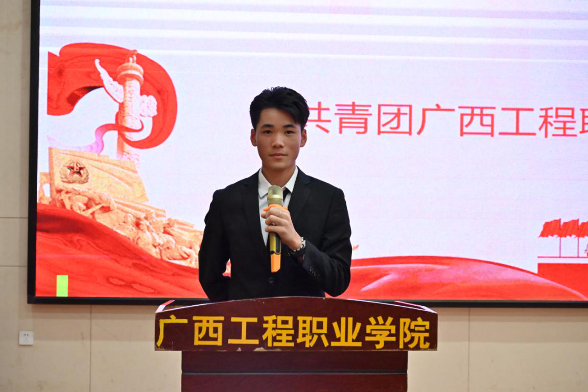 圖為新當(dāng)選經(jīng)濟(jì)管理學(xué)院第十八屆學(xué)生會(huì)主席團(tuán)成員莫其炅宣讀倡議書圖片