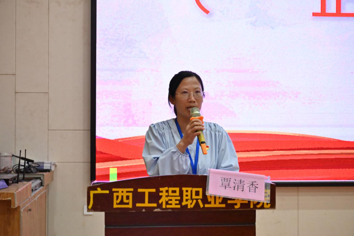 圖為經(jīng)濟(jì)管理學(xué)院黨支部書記、院長覃清香講話圖片