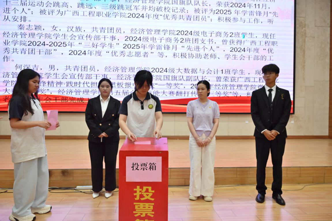 在緊張有序的氛圍中,參會(huì)代表認(rèn)真履行職責(zé),投出神圣一票,選舉產(chǎn)生經(jīng)濟(jì)管理學(xué)院第十八屆學(xué)生會(huì)主席團(tuán)成員,整個(gè)選舉過程透明公開,彰顯民主精神,為學(xué)生會(huì)注入新鮮血液,開啟學(xué)生工作新篇章。