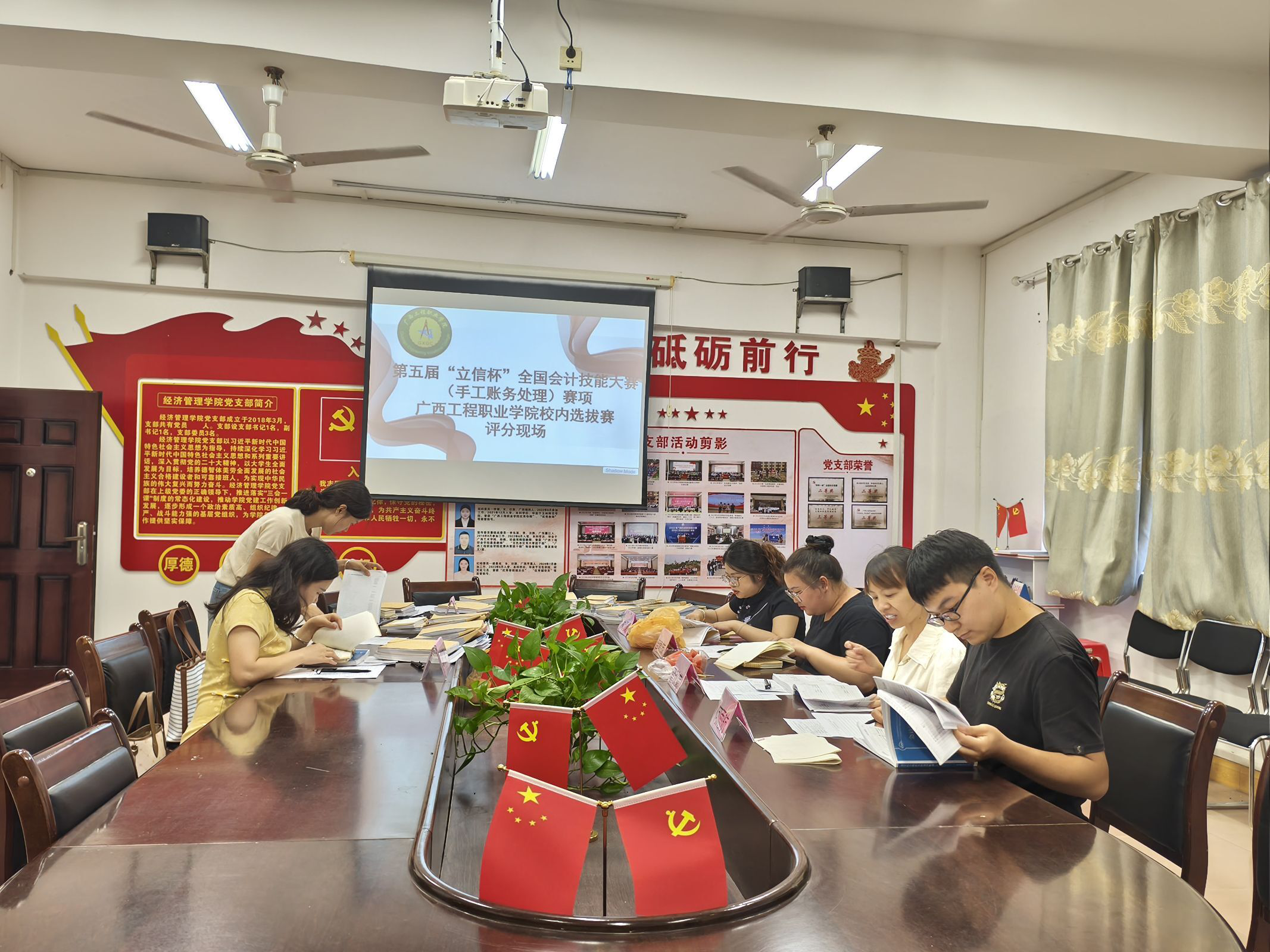圖為第五屆“立信杯”全國會(huì)計(jì)技能大賽(手工賬務(wù)處理)校賽評(píng)審現(xiàn)場