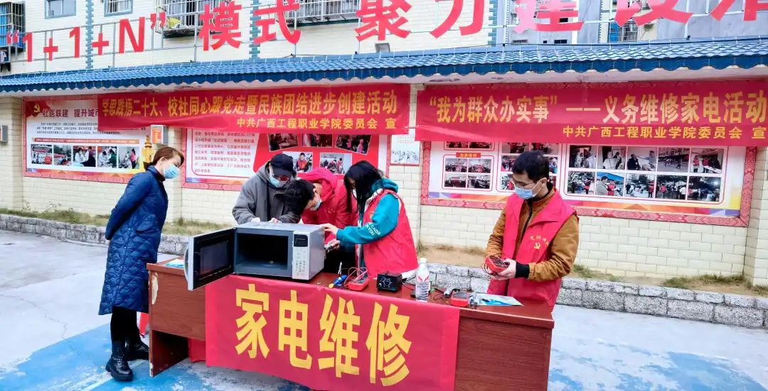 為學習貫徹黨的二十大精神,推動黨支部“我為群眾辦實事”活動走深走實,汽車與機電學院黨支部在學校黨委的組織下,2022年12月2日參加平果市大學園區(qū)與馬頭鎮(zhèn)城東社區(qū)聯(lián)盟“大黨委”開展的“學思踐悟二十大 校社同心跟黨走”暨民族團結進步創(chuàng)建活動,到馬頭鎮(zhèn)城東社區(qū)為居民提供免費家電維修志愿服務活動。