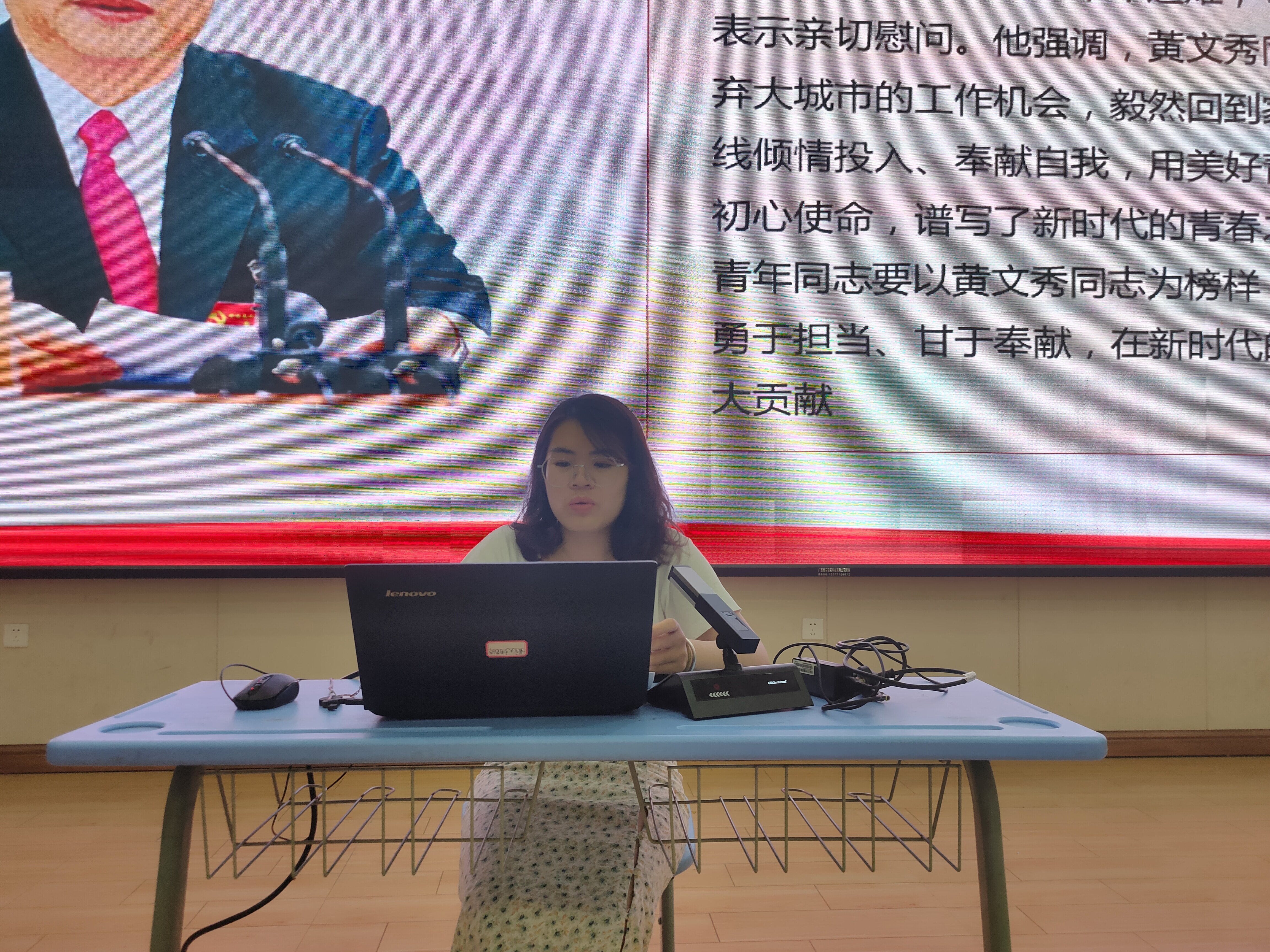 鄧鎮(zhèn)連同志作《“新時(shí)代榜樣”黃文秀先進(jìn)事跡》專題宣講 在黨課學(xué)習(xí)會(huì)上,汽車與機(jī)電學(xué)院黨支部副書記鄧鎮(zhèn)連同志作了《“新時(shí)代榜樣”黃文秀先進(jìn)事跡》專題宣講,她強(qiáng)調(diào)榜樣的力量是無(wú)窮的,廣大黨員和青年要深刻學(xué)習(xí)領(lǐng)會(huì)習(xí)近平總書記對(duì)黃文秀同志先進(jìn)事跡重要指示的精神,時(shí)刻牢記“走得再遠(yuǎn)、走到再光輝的未來(lái),也不能忘記走過的過去,不能忘記為什么出發(fā)”,自覺以黃文秀同志為榜樣,不忘初心、牢記使命,勇于奉獻(xiàn)擔(dān)當(dāng),在新時(shí)代的長(zhǎng)征路上做出新的更大貢獻(xiàn)。