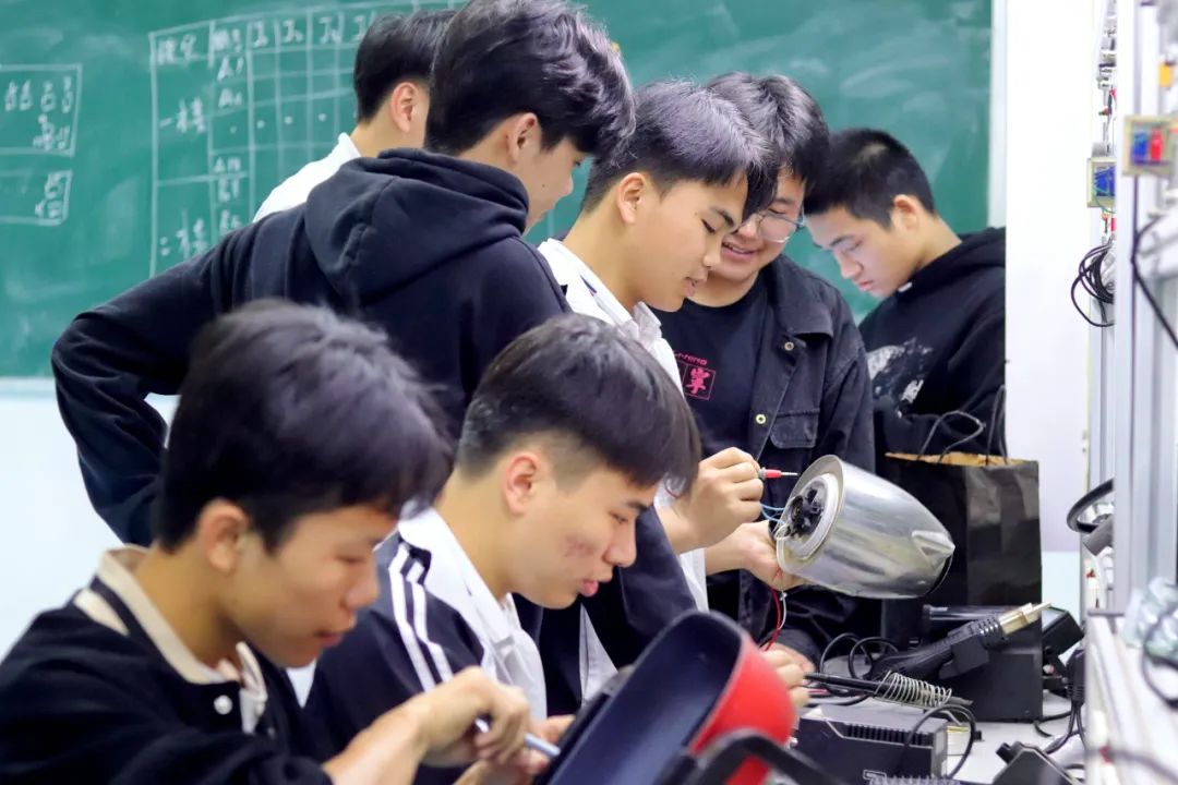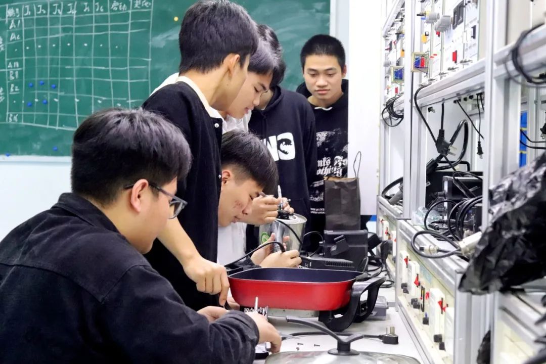 在維修實訓(xùn)室,學(xué)生志愿者們在張軍華老師的指導(dǎo)下,憑著過硬的專業(yè)知識維修家電,以專業(yè)知識為師生辦好事、辦實事、解決生活實際困難和問題。汽車與機電學(xué)院黨支部副書記鄧鎮(zhèn)連也到現(xiàn)場指導(dǎo)維修活動。