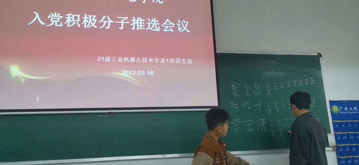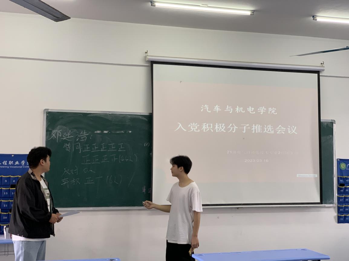 21級機(jī)器人1班團(tuán)支部進(jìn)行統(tǒng)票 至此,2023年春學(xué)期汽車與機(jī)電學(xué)院入黨積極分子推優(yōu)大會圓滿結(jié)束。本次入黨積極分子推優(yōu)大會的召開,不僅堅定了青年團(tuán)員積極向黨組織靠攏的決心,也為黨輸送了優(yōu)秀的新鮮血液,培養(yǎng)后繼之才。相信此次通過入黨積極分子推優(yōu)的優(yōu)秀團(tuán)員今后會更加理解中國共產(chǎn)黨在面對苦難時表現(xiàn)出的堅韌品質(zhì),不斷追求、進(jìn)取,迎難而上,爭取早日成為一名共產(chǎn)黨員。