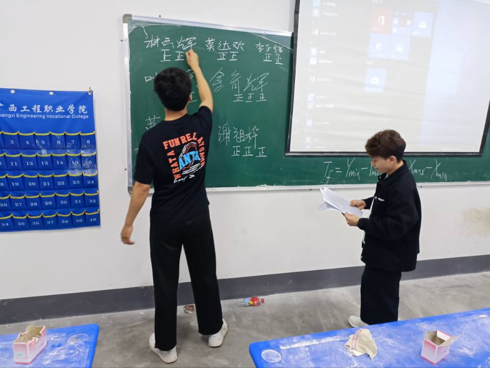 22級電氣9班余漢文同學(xué)莫金神同學(xué)進(jìn)行票數(shù)匯總及宣布推選結(jié)果