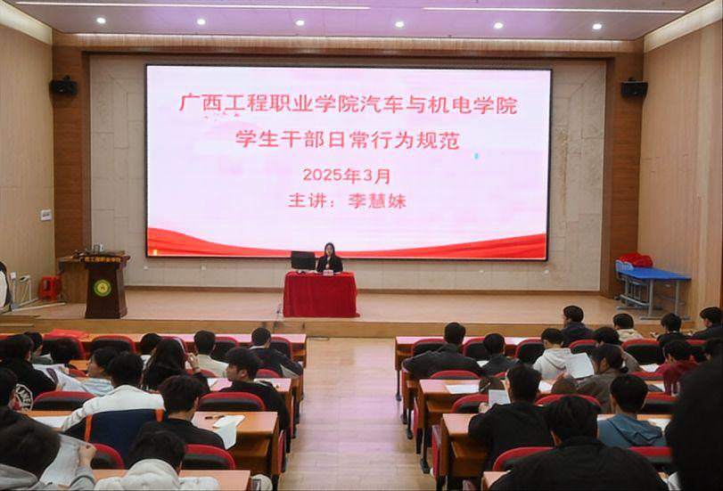 學(xué)生干部在校園生活中扮演著至關(guān)重要的角色,他們是校園活力的推動(dòng)者、師生溝通的橋梁。為進(jìn)一步提升學(xué)生干部的綜合素質(zhì)與工作能力,2025年3月18日-20日廣西工程職業(yè)學(xué)院汽車(chē)與機(jī)電學(xué)院在圖文信息大樓一樓學(xué)術(shù)報(bào)告廳舉行本次培訓(xùn)。本次培訓(xùn)涵蓋多個(gè)關(guān)鍵領(lǐng)域,致力于為學(xué)生干部們的成長(zhǎng)之路點(diǎn)亮明燈。