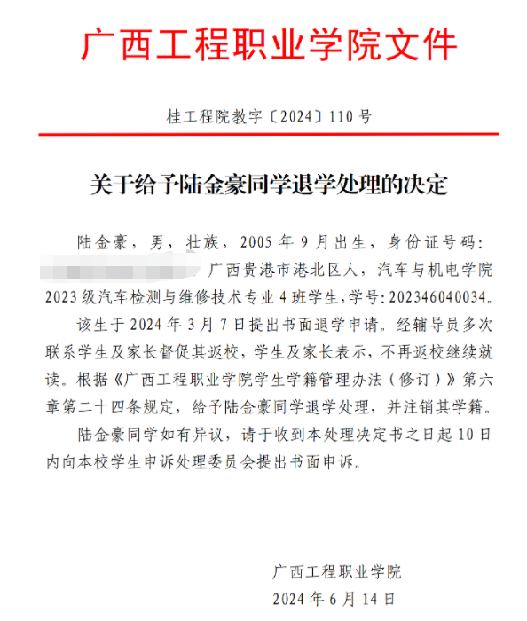 下一篇:《關(guān)于給予朱柏鴻同學(xué)退學(xué)處理的決定》的公告