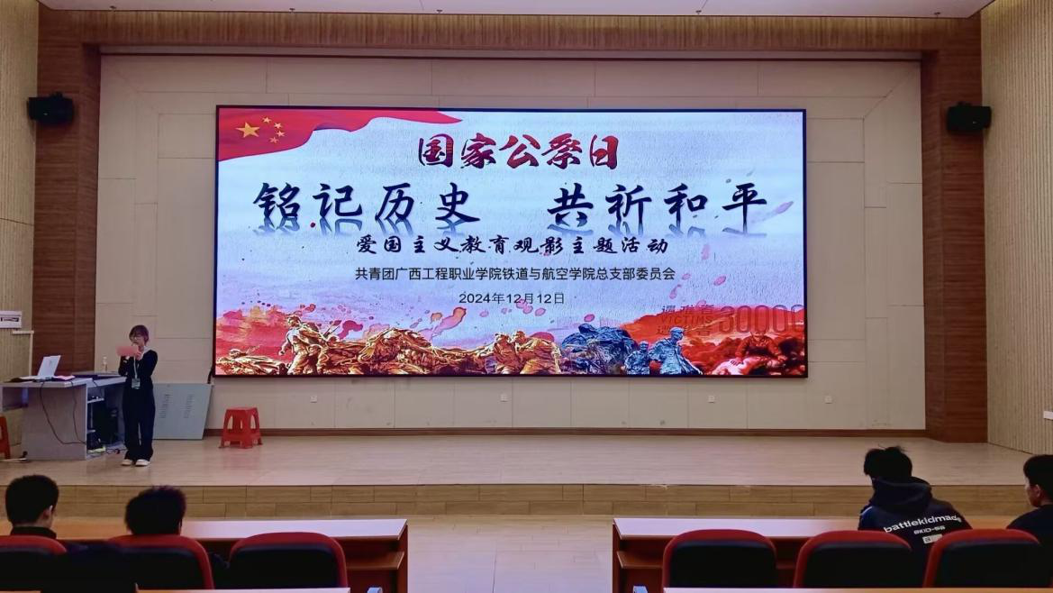 為紀(jì)念南京大屠殺死難者“國家公祭日”,引導(dǎo)團(tuán)員青年們緬懷先輩,銘記歷史教訓(xùn),12月12日下午,鐵道與航空學(xué)院在學(xué)校圖文信息大樓五樓報(bào)告廳開展“銘記歷史,共祈和平”國家公祭日觀影活動(dòng)。