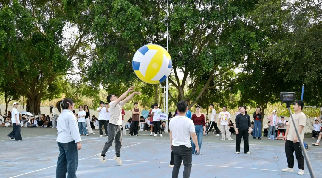 校慶活動以體育競技為亮點,在運動場上激情綻放。巨型排球賽中,同學們精神抖擻,嚴陣以待??矍蛩查g,選手們高高躍起,以雷霆之勢將球扣殺,每一個動作都凝聚著團隊的默契與拼搏,場邊的陣陣喝彩是對他們體育精神的最好褒獎。