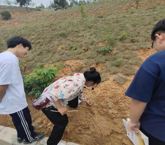 通過此次實訓,學生判斷學校后山的巖石多為沉積巖中的石灰?guī)r,土質(zhì)類型為富含高嶺石礦物的膨脹土,不宜作為天然地基土。加深了學生對理論知識的認知理解。