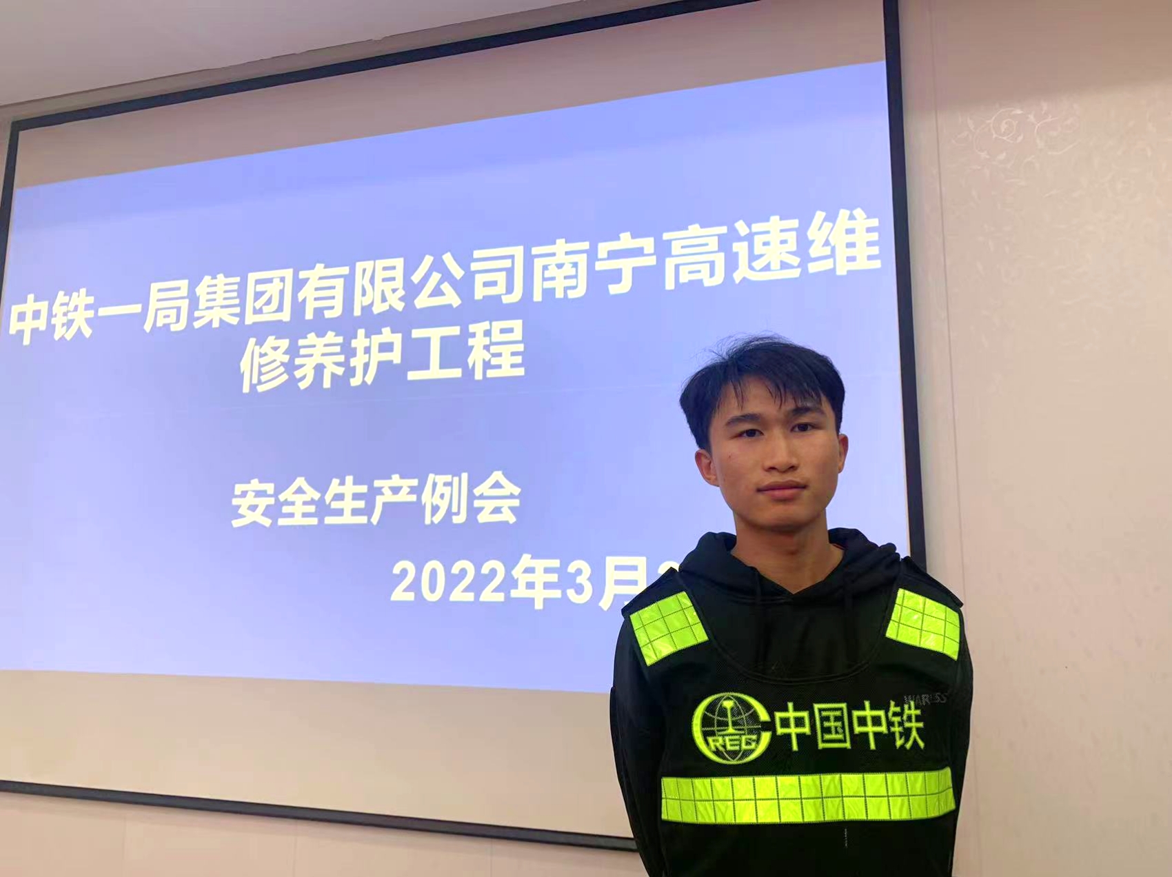 凌國(guó)穎 中共預(yù)備黨員 城市軌道交通工程技術(shù) 2019級(jí) 現(xiàn)在在南寧中鐵一局擔(dān)任資料員兼施工員。
