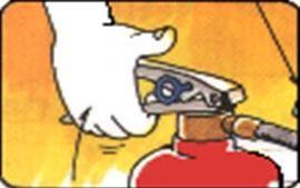 第四步“噴”。往下按壓閥,對(duì)準(zhǔn)火焰根部噴射。