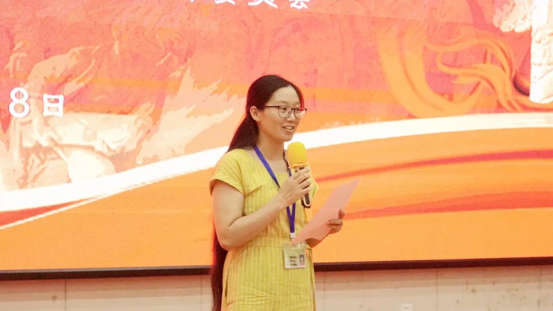 藝術(shù)設(shè)計(jì)學(xué)院黨支部書記覃鳳姣宣讀比賽評分標(biāo)準(zhǔn)