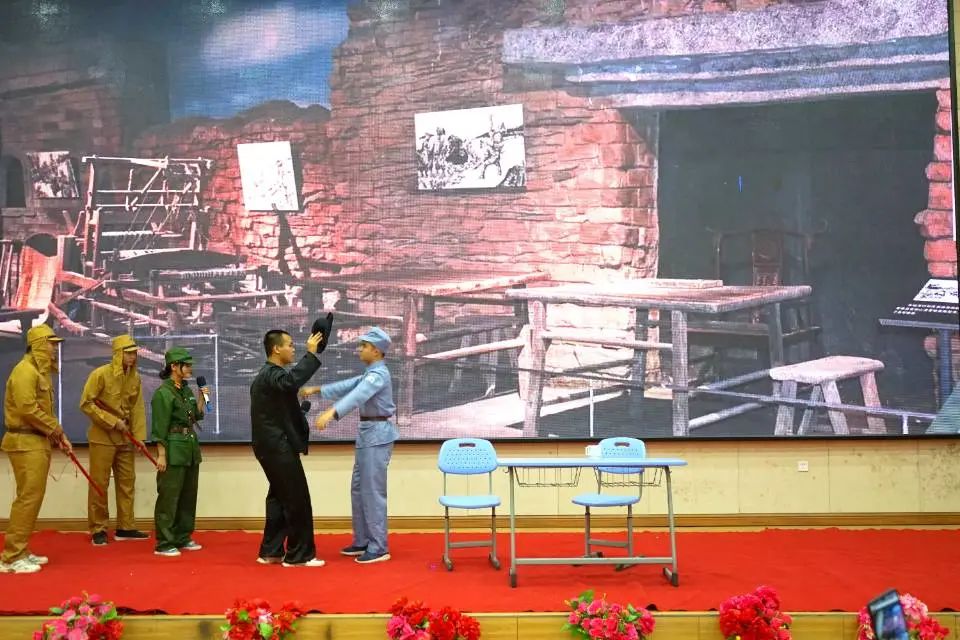本次主題晚會以“重溫黨史,共演經(jīng)典”為主題,將詩詞朗誦、歌唱祖國、英雄故事場景再現(xiàn)等多種藝術(shù)形式相結(jié)合,為師生們帶來一場黨史學(xué)習(xí)教育盛宴。
