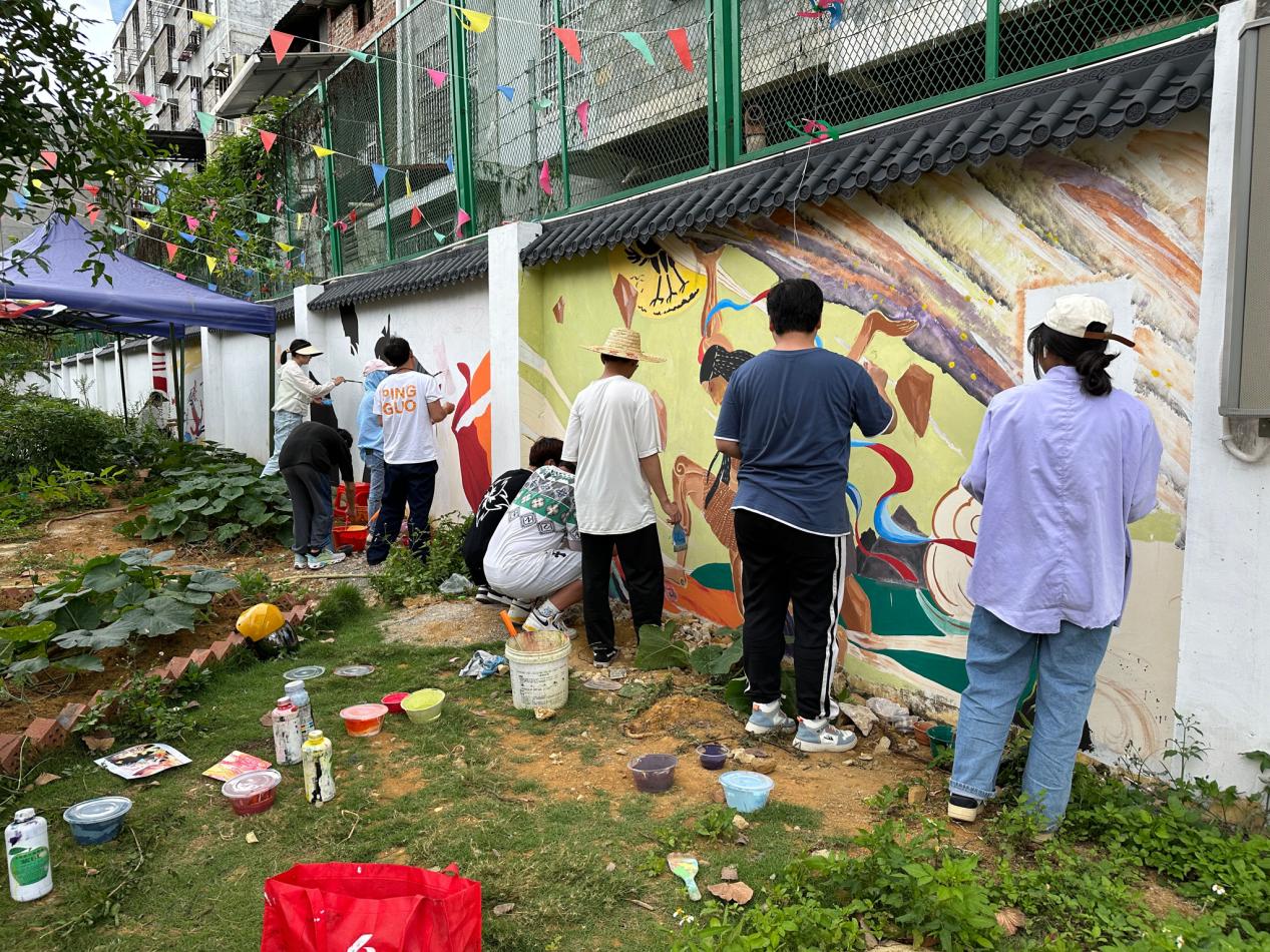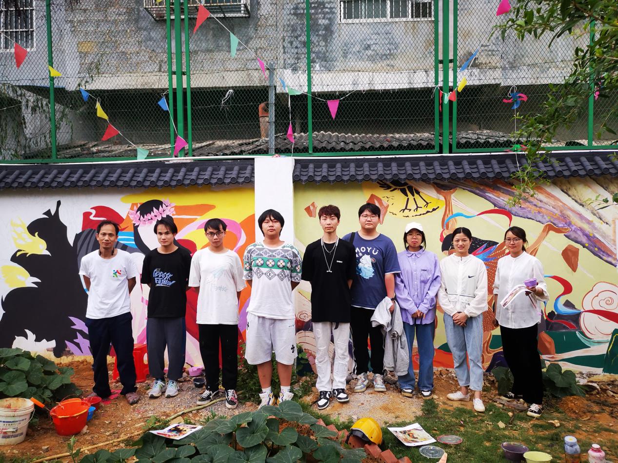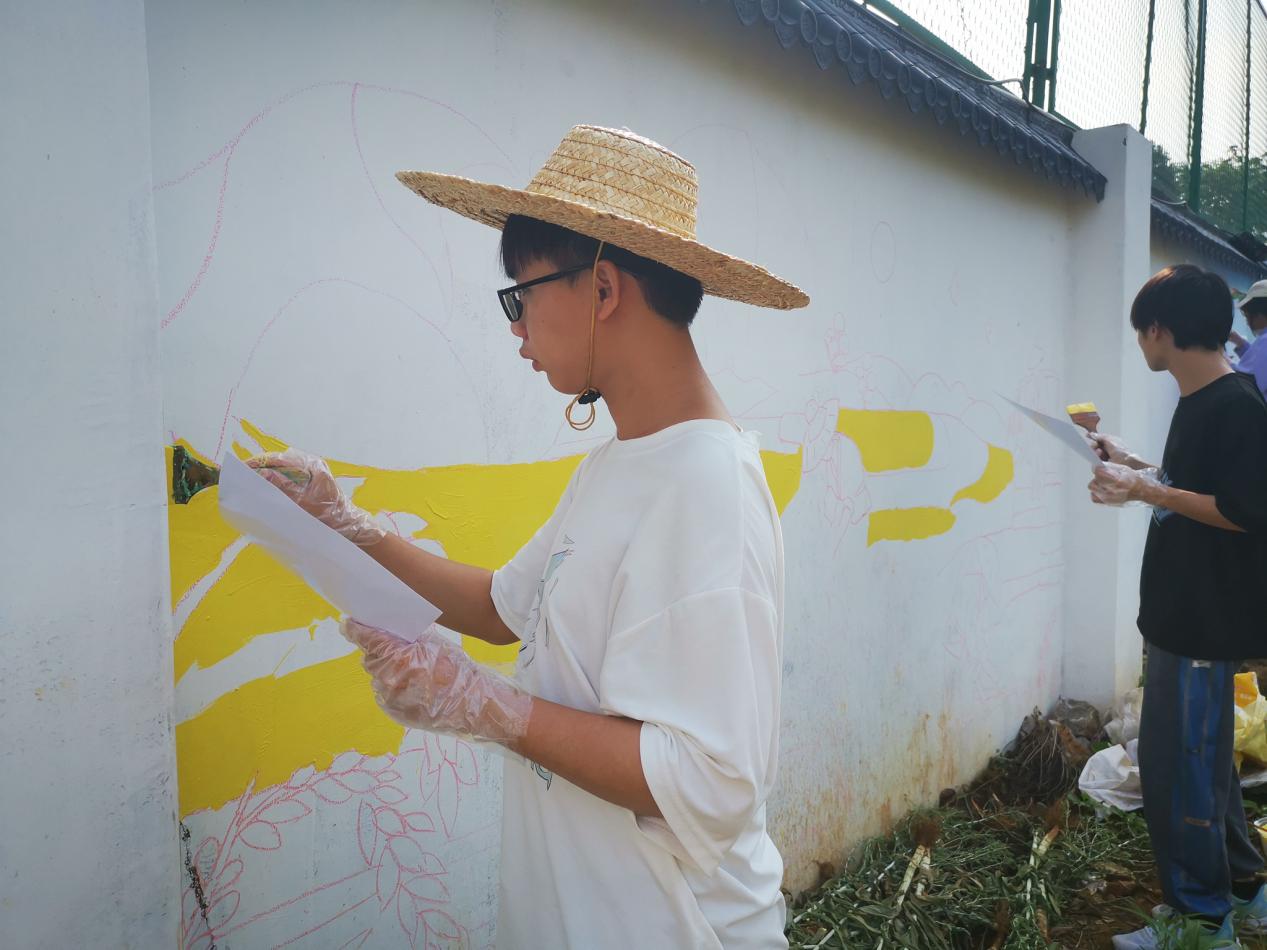 從紙上的設(shè)計,到具體在石灰白墻上展現(xiàn)出來,是一個從無到有、克服困難的過程。學生用自己的耐心、熱情和堅持完成了這一任務(wù),取得了良好效果。同學們保持戰(zhàn)斗熱情,勾線起稿、立面粉刷、精描線稿、調(diào)和顏色、上墻涂色,一筆一畫皆風景。