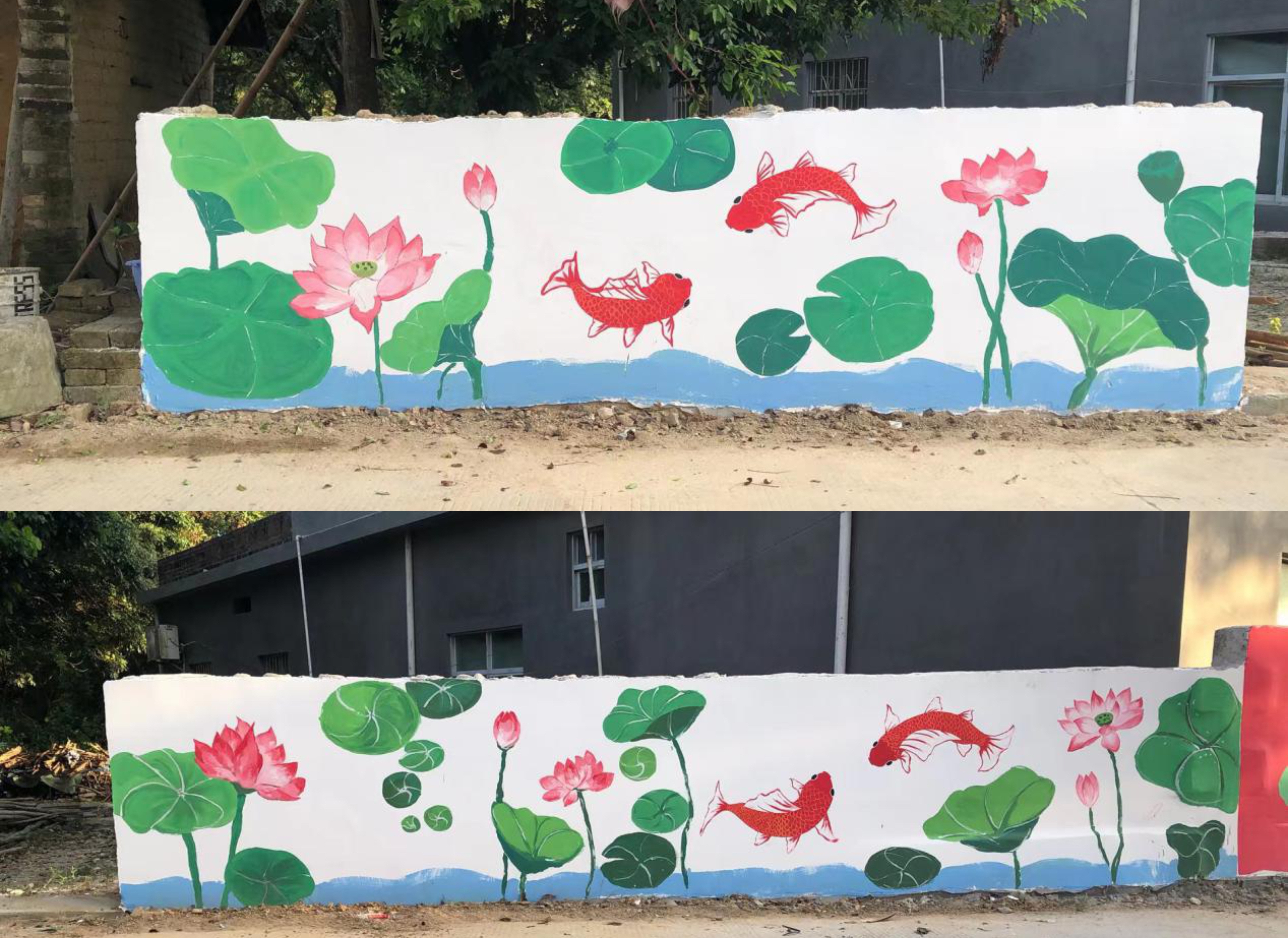 為進(jìn)一步學(xué)習(xí)貫徹黨的二十大精神,積極響應(yīng)黨的號召,助力鄉(xiāng)村振興建設(shè),打造“美麗庭院”,為鄉(xiāng)村振興添色彩,提升鄉(xiāng)村內(nèi)涵,7月21日至23日,藝術(shù)設(shè)計(jì)學(xué)院黨支部、百色工程職業(yè)技術(shù)學(xué)校黨支部范玉翠、郁長松、趙志輝、蘇媚、陸閑等5名教師黨員赴玉林市陸川縣橫山鎮(zhèn)旺坡村開展公益“彩色文化墻繪,繪就鄉(xiāng)村振興”主題黨日活動(dòng),用藝術(shù)服務(wù)鄉(xiāng)村振興、用畫筆描繪美麗鄉(xiāng)村。黨員教師共學(xué)黨史,共繪創(chuàng)意墻繪,助力鄉(xiāng)村振興建設(shè),展示“黨建引領(lǐng)、產(chǎn)業(yè)興旺、生態(tài)宜居、生活富裕、鄉(xiāng)風(fēng)文明、治理有效”的鄉(xiāng)村振興新風(fēng)貌。