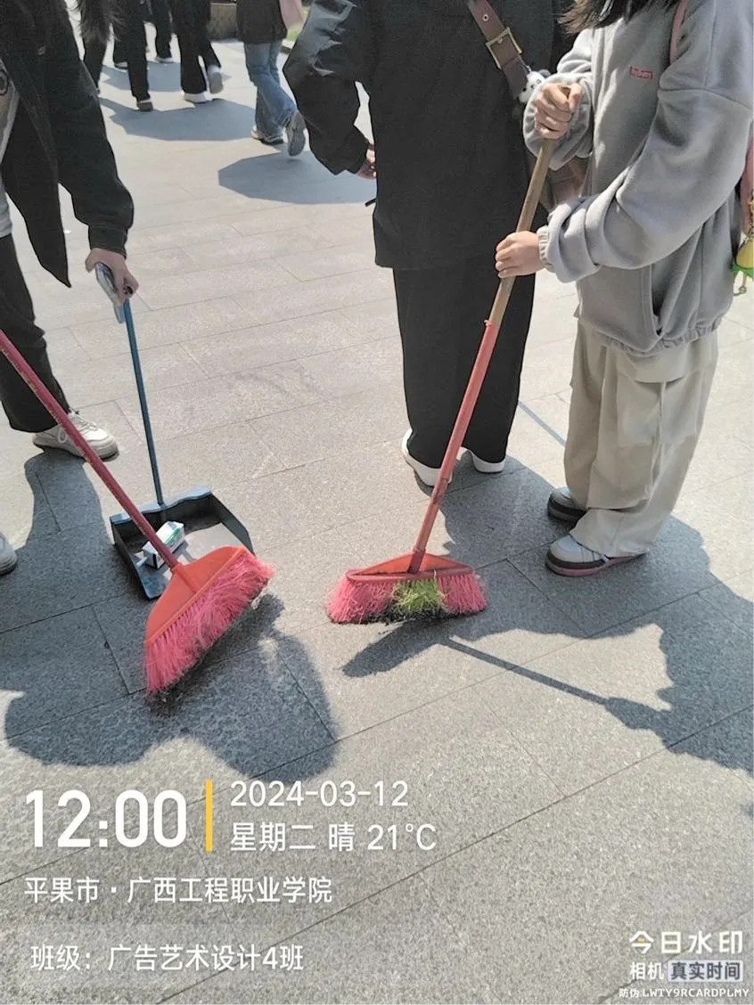 3月12日,2023級室內(nèi)設(shè)計3班的同學(xué)們前往平果市文化公園進行衛(wèi)生清潔志愿服務(wù)活動,清掃落葉及撿拾白色垃圾。同學(xué)們以實際行動傳承雷鋒精神。