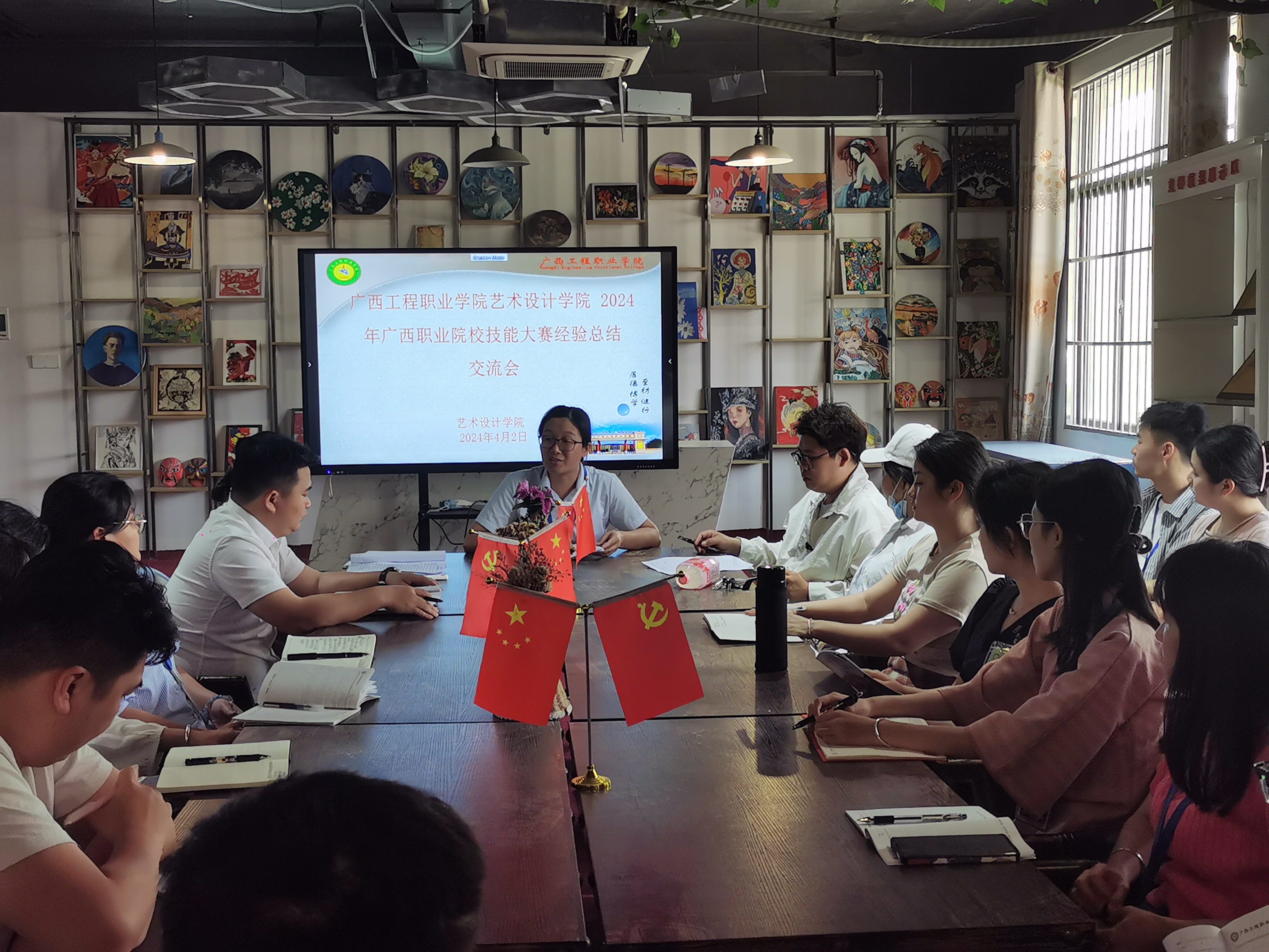 2024年4月2日下午,藝術(shù)設(shè)計學(xué)院在學(xué)院一樓黨員閱讀區(qū)召開了2024年廣西職業(yè)院校技能大賽經(jīng)驗交流會,學(xué)院全體教師參加會議,會議由學(xué)院黨支部書記、院長覃鳳姣主持。