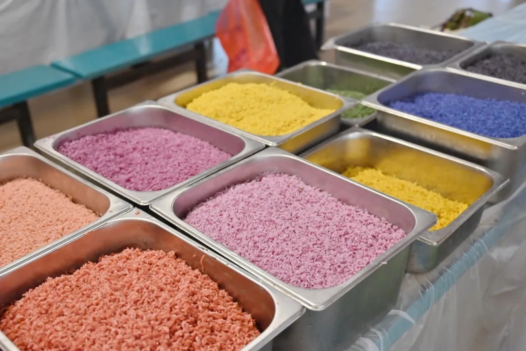七彩糯米飯是“廣西三月三”這一節(jié)日不可或缺的美食,色彩斑斕、口感獨特的糯米飯,不僅象征著吉祥如意、五谷豐登,更是人們表達情感、傳遞友情的橋梁。