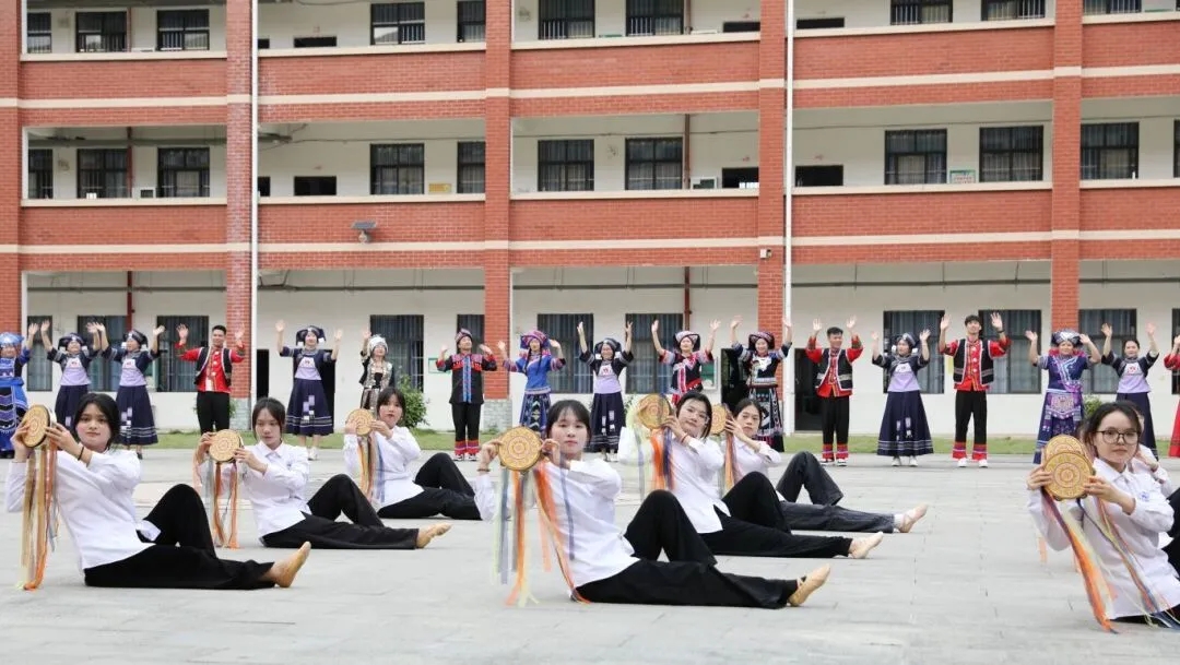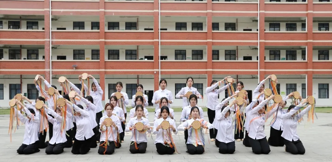 同學們意氣風發(fā)、朝氣蓬勃,踏著節(jié)拍踩著輕盈的舞步,盡情體驗“廣西三月三”特有的民族風情,形成校園一道靚麗的風景線。