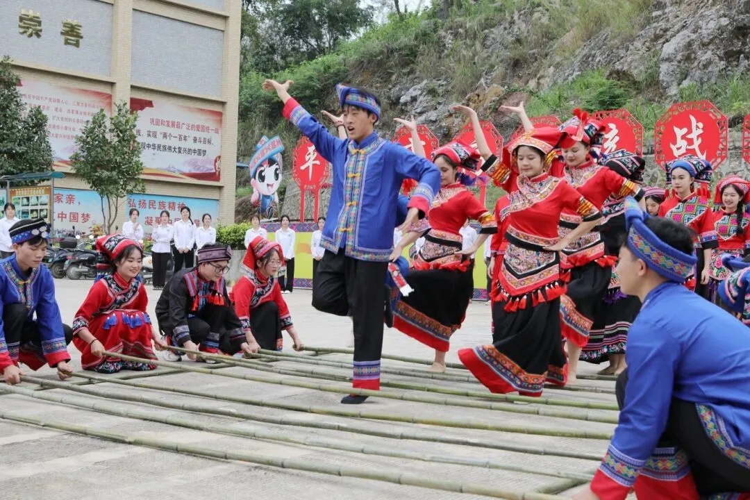 竿竿舞民族旋律,步步現(xiàn)團結情懷。4月9日,同學們身著民族服裝,相聚在統(tǒng)戰(zhàn)紅色文化教育基地,歡快跳起了竹竿舞。紀委書記、副校長彭高彬等校領導到現(xiàn)場與師生一起共慶三月三。